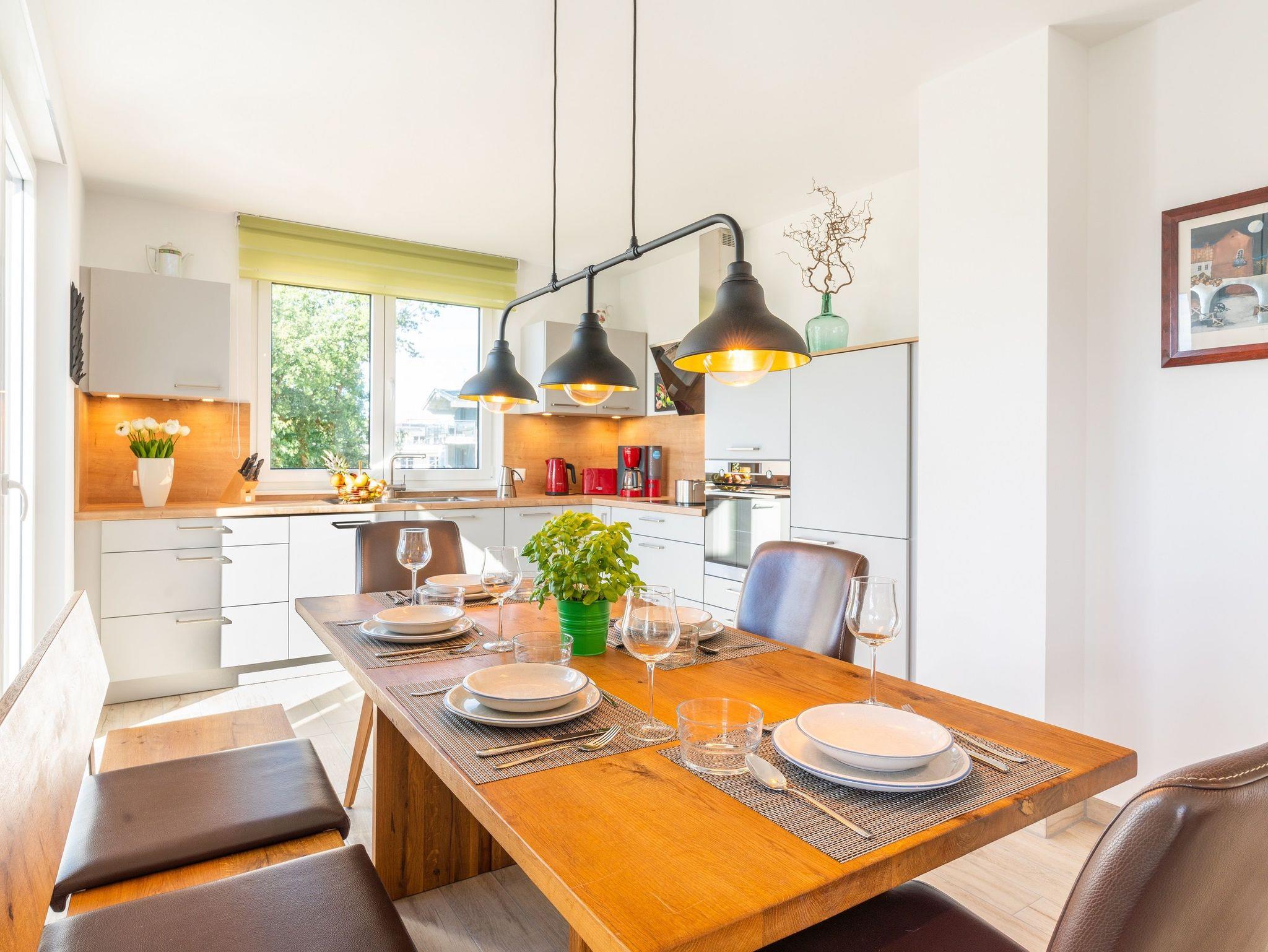 Auf einer Wohnfläche von 92 m² finden vier Erwachsene und ein Kleinkind bis zwei Jahre in dieser modern eingerichteten Ferienwohnung ausreichend Platz für einen entspannten Urlaub am Stettiner Haff auf Usedom.