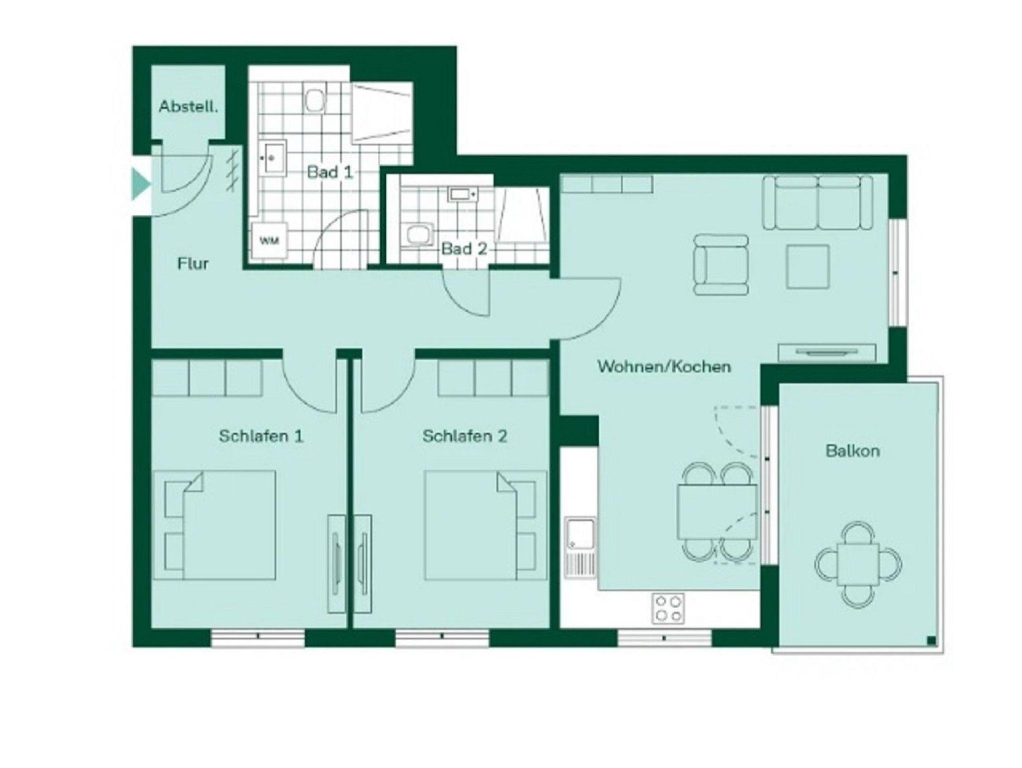 Dieses großzügige Ferienapartment befindet sich in der zweiten Etage (Aufzug vorhanden) des im Jahre 2022 erbauten Gebäudes Nummer 5 und weist viele behindertenfreundliche Merkmale auf.