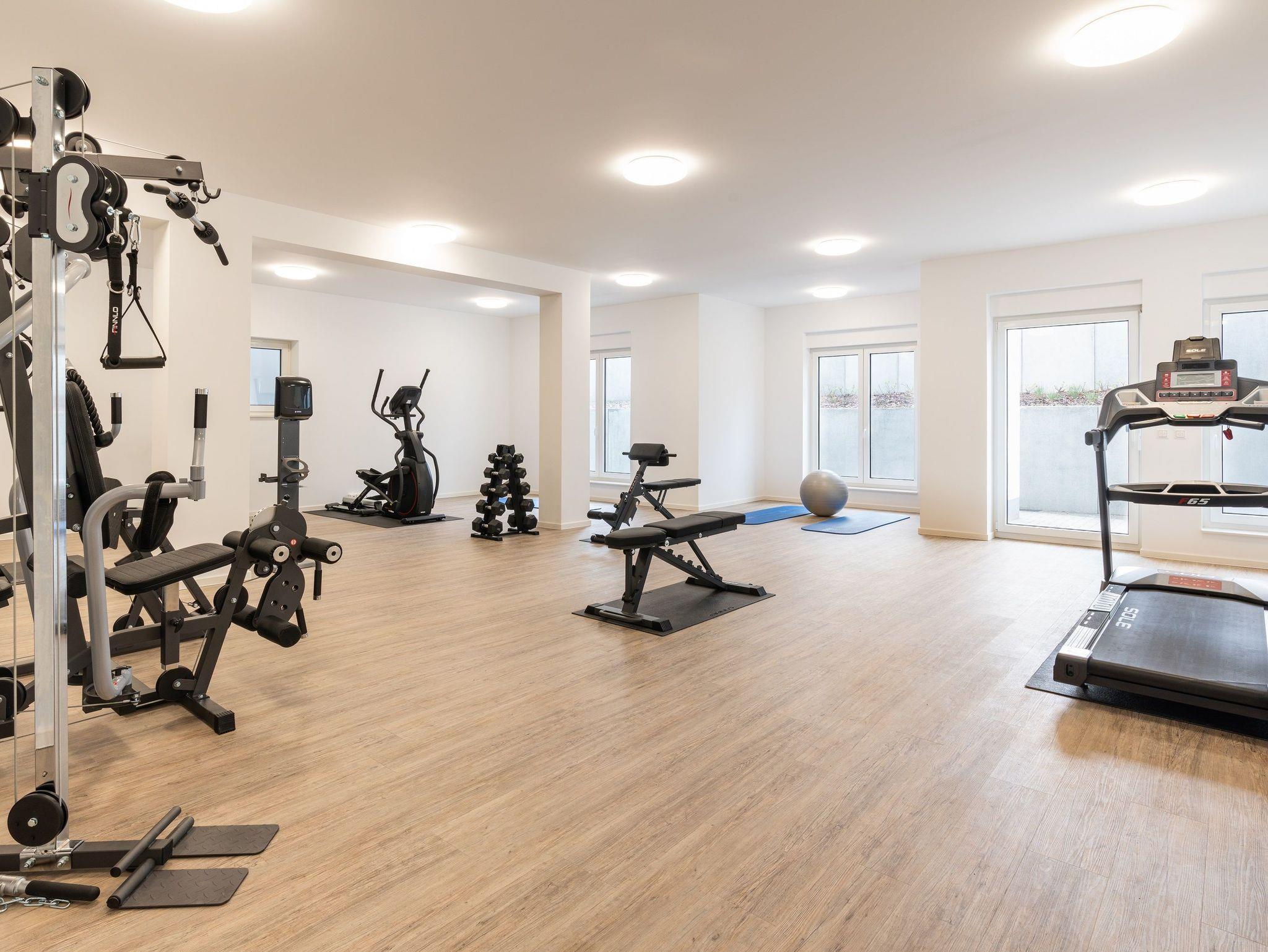 Die aktiven Urlauberinnen und Urlauber kommen in dem großzügigen, lichtdurchfluteten Fitnessraum auf ihre Kosten, wo das Angebot an hochwertigen Marken-Sportgeräten u. a. mit verschiedenen Cardiogeräten, einer Multifunktions-Kraftstation und Hantelbänken ein individuelles Training ermöglicht.