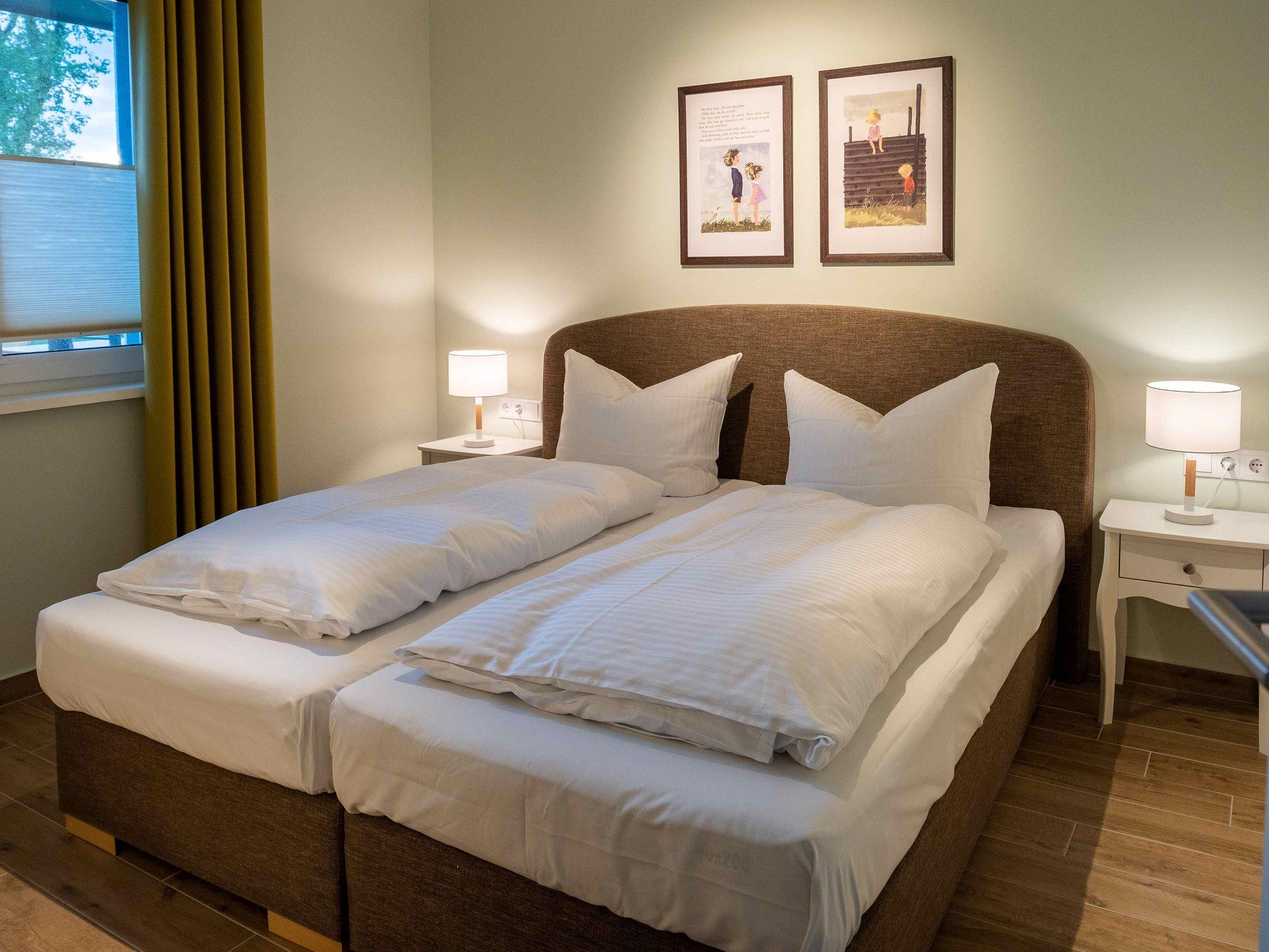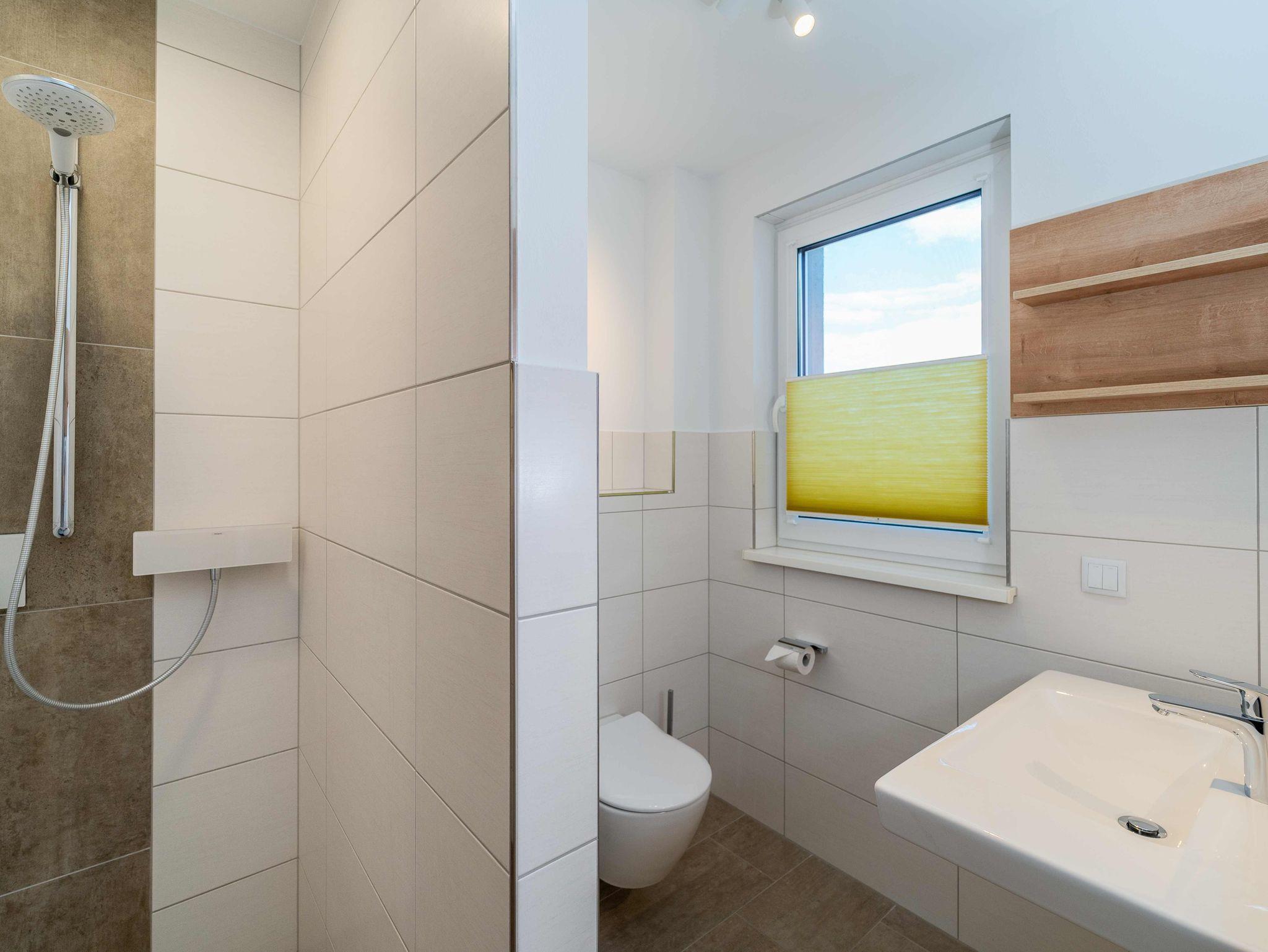 Unsere Ferienwohnung ist großzügig geschnitten und für bis zu 6 Personen geeignet, Erdgeschoß, 86 qm, 2 Schlafzimmer zzgl. Schlafcoach im Wohnzimmer, 1 Terrasse, 2 Bäder, Küche