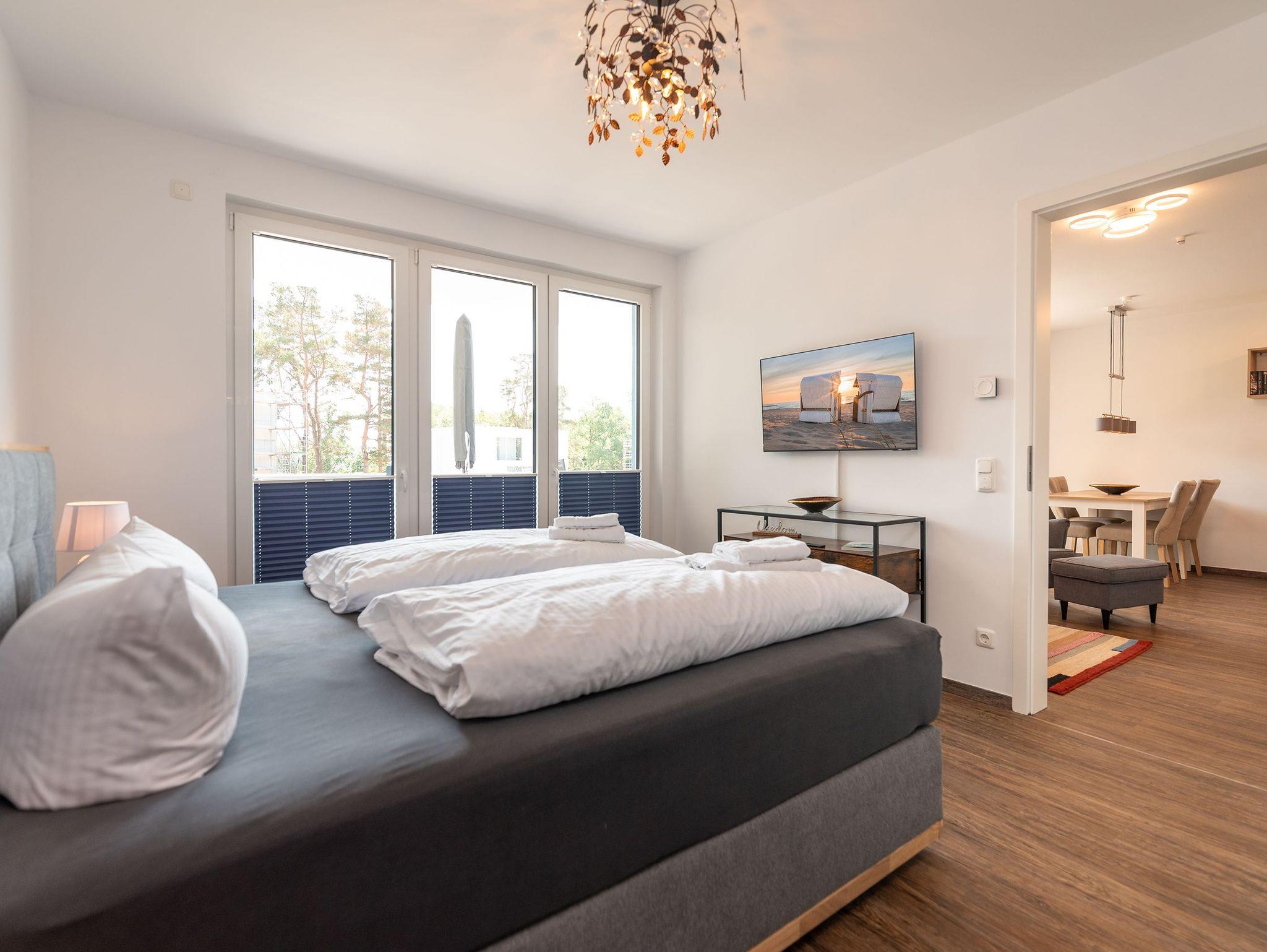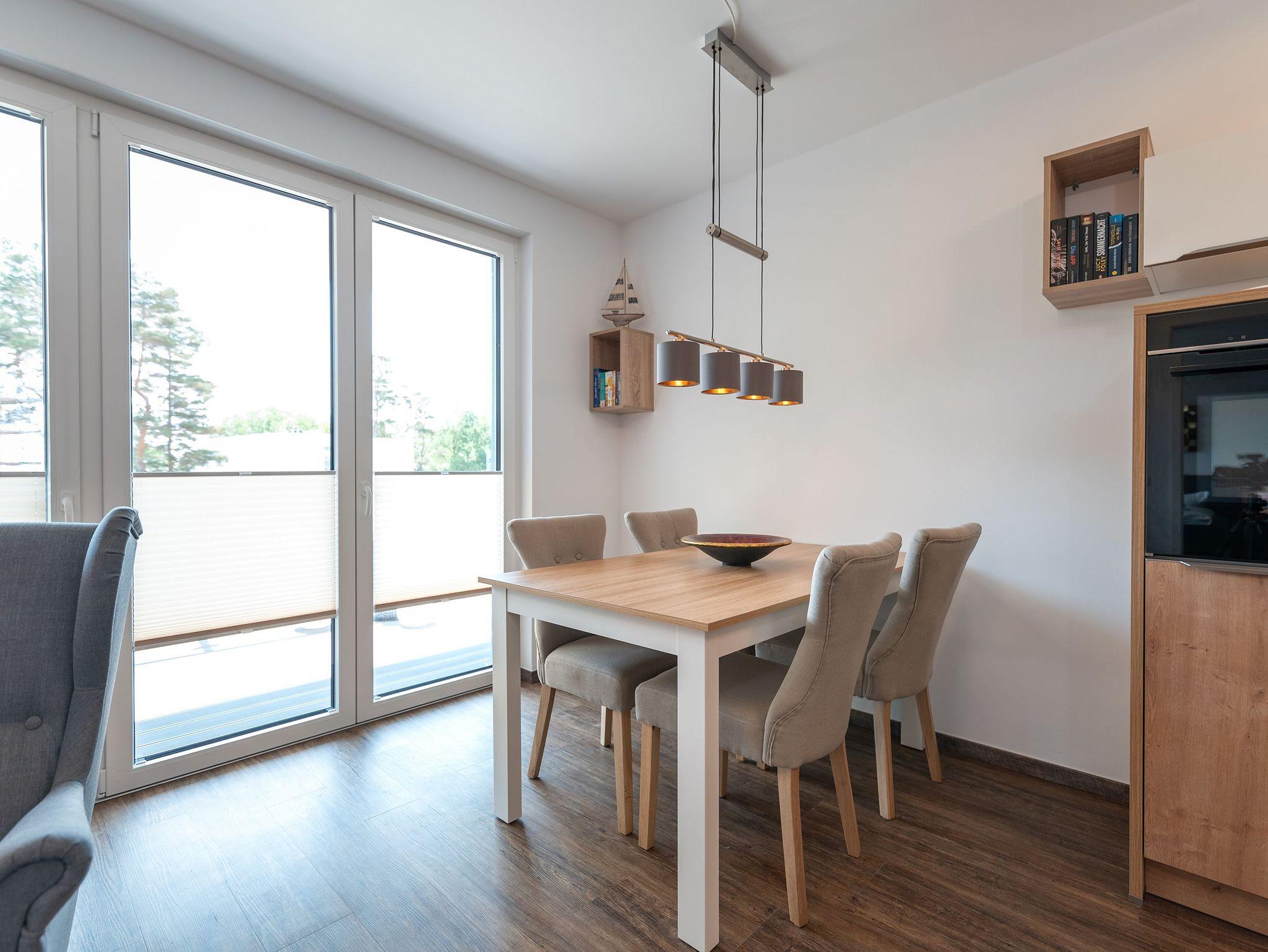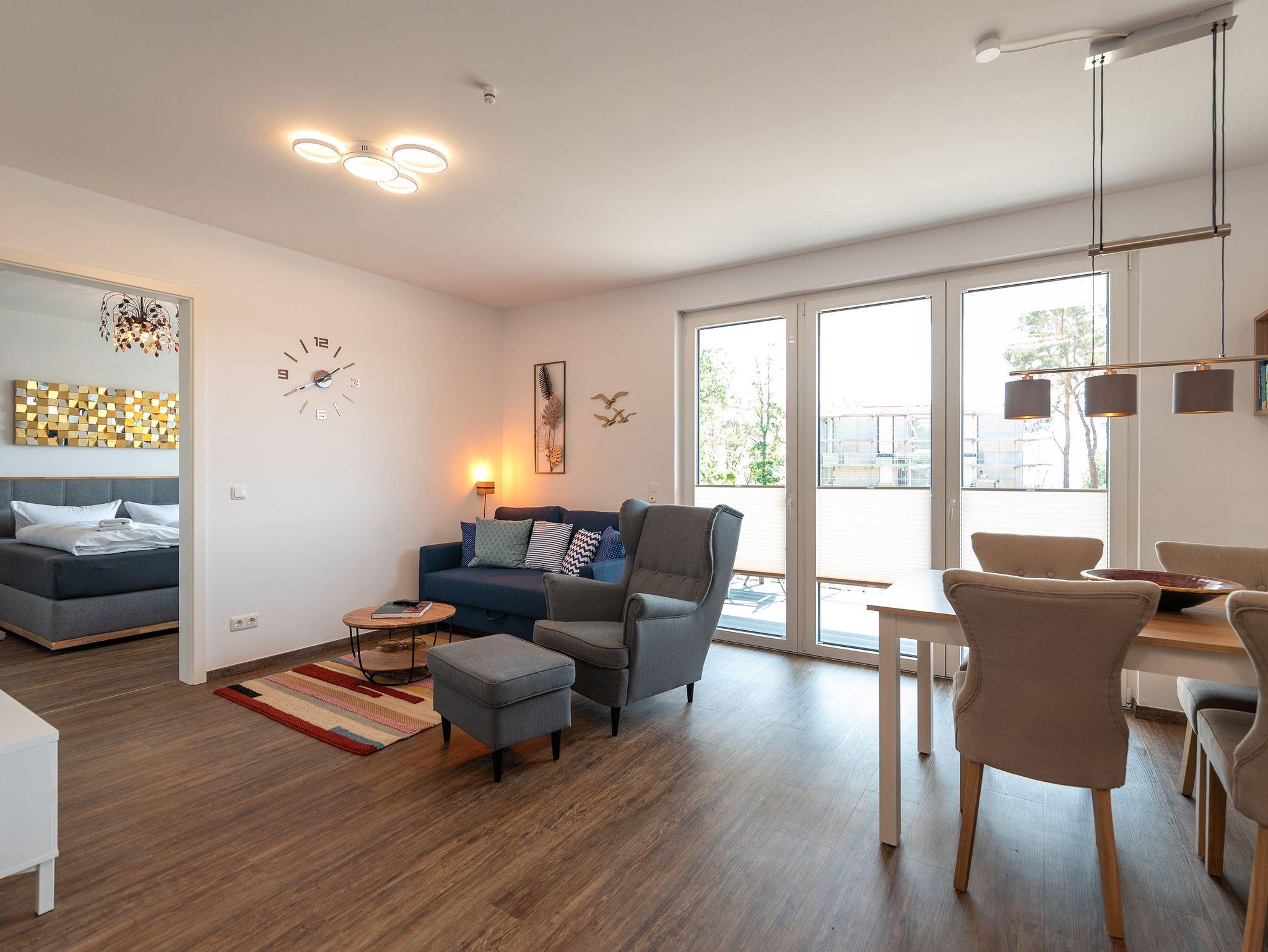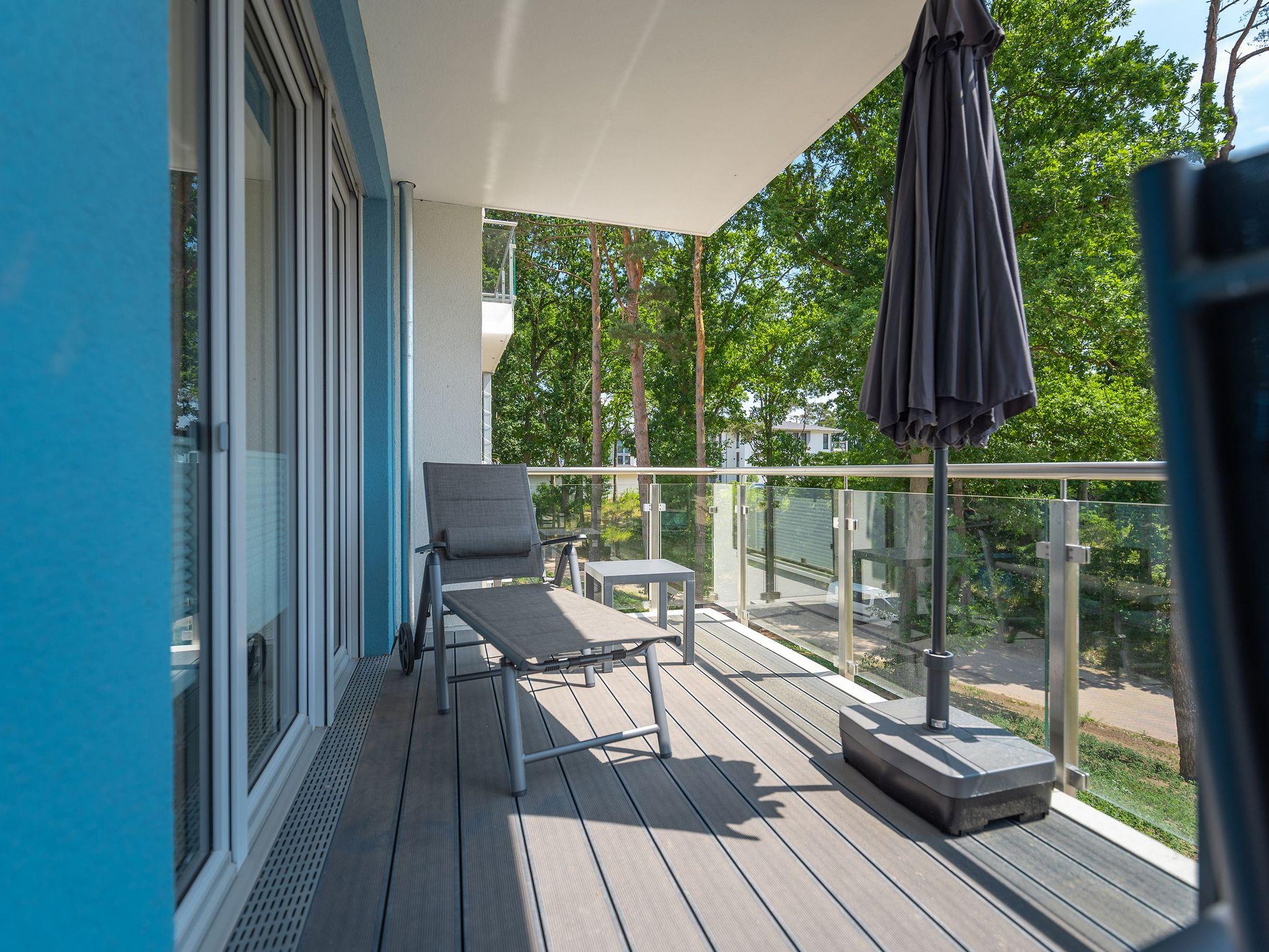 Das Usedom Apartment Luca im 1. Obergeschoss des Hauses 3a in der Ferienanlage AM KIEFERNHAIN bietet auf 63 qm Wohnfläche Platz für 3 Erwachsene und 1 Kleinkind (max. 2 Jahre). Dank eines Fahrstuhls erreichen Sie bequem die Wohnung sowie den Wellnessbereich im Dachgeschoss. Das Apartment besticht durch seinen großen Südbalkon, von dem aus Sie einen fantastischen Blick auf das Stettiner Haff genießen können.