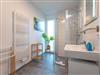 Das Badezimmer ist modern gestaltet mit einer ebenerdigen Dusche, WC, einem Waschtisch mit Spiegel, Fön und einer Handtuchheizung. Kostenfreies WLAN ist in der gesamten Wohnung verfügbar.