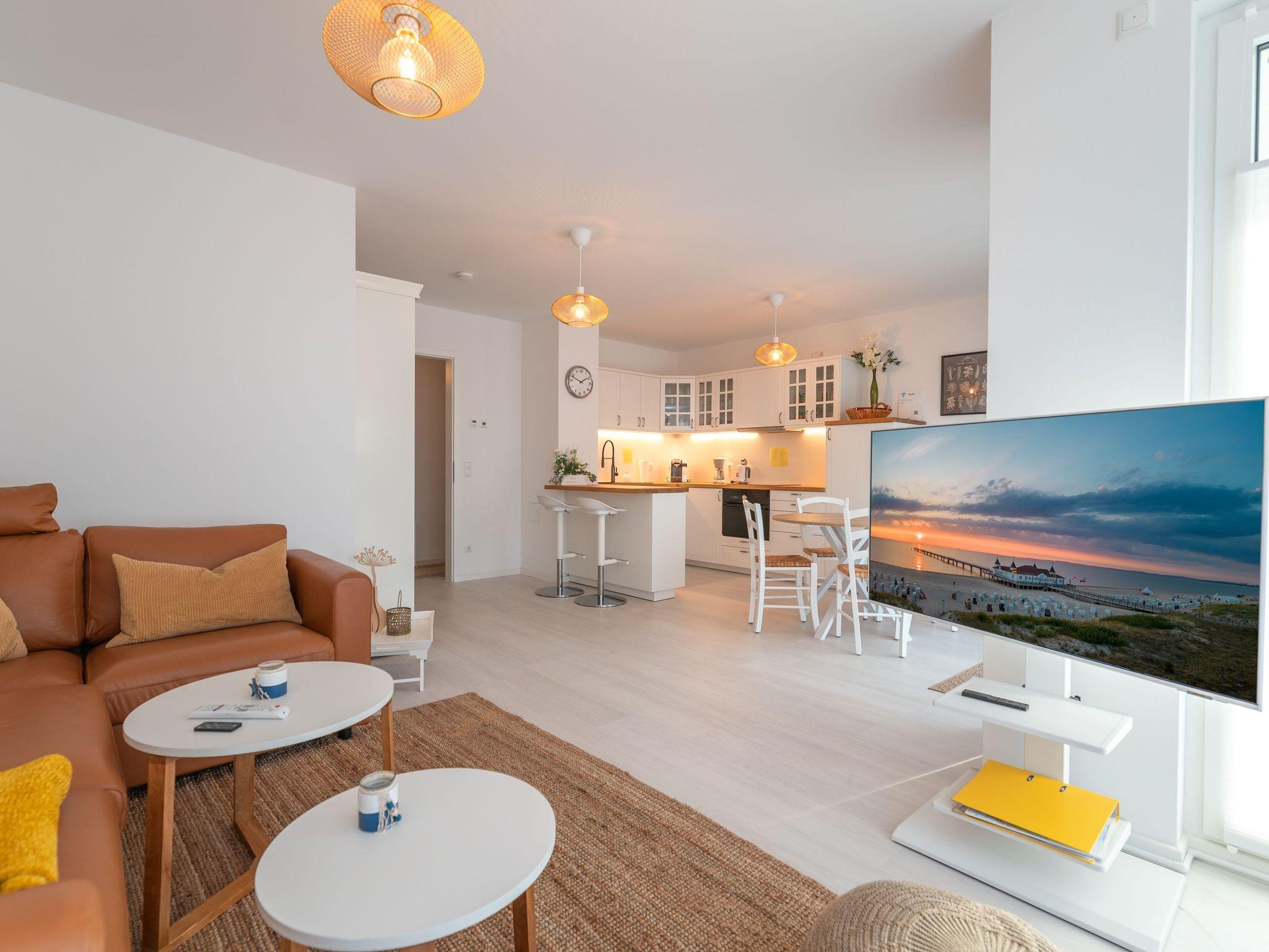 Willkommen in der Ferienwohnung ?Silbermöwe?, einem hellen und modernen Urlaubszuhause auf 74 m², das ideal für 2 Erwachsene und zwei Kinder konzipiert ist. Gelegen im Erdgeschoss in einem Appartementhaus an der Usedomer Haffküste, bietet diese Wohnung alles, was Sie für einen entspannten Aufenthalt benötigen.