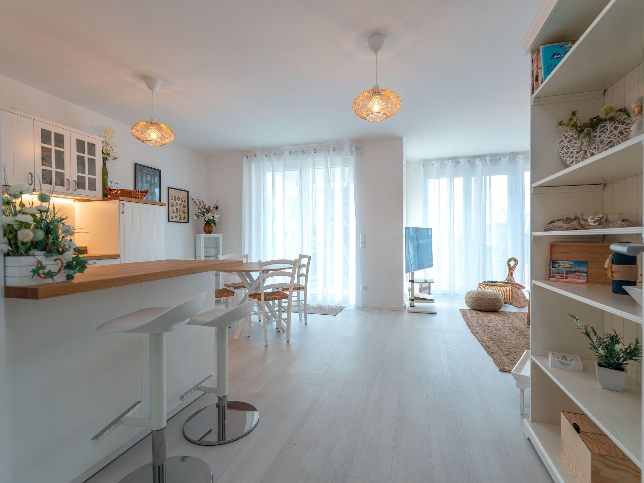Willkommen in der Ferienwohnung „Silbermöwe“, einem hellen und modernen Urlaubszuhause auf 74 m², das ideal für 2 Erwachsene und zwei Kinder konzipiert ist. Gelegen im Erdgeschoss in einem Appartementhaus an der Usedomer Haffküste, bietet diese Wohnung alles, was Sie für einen entspannten Aufenthalt benötigen.