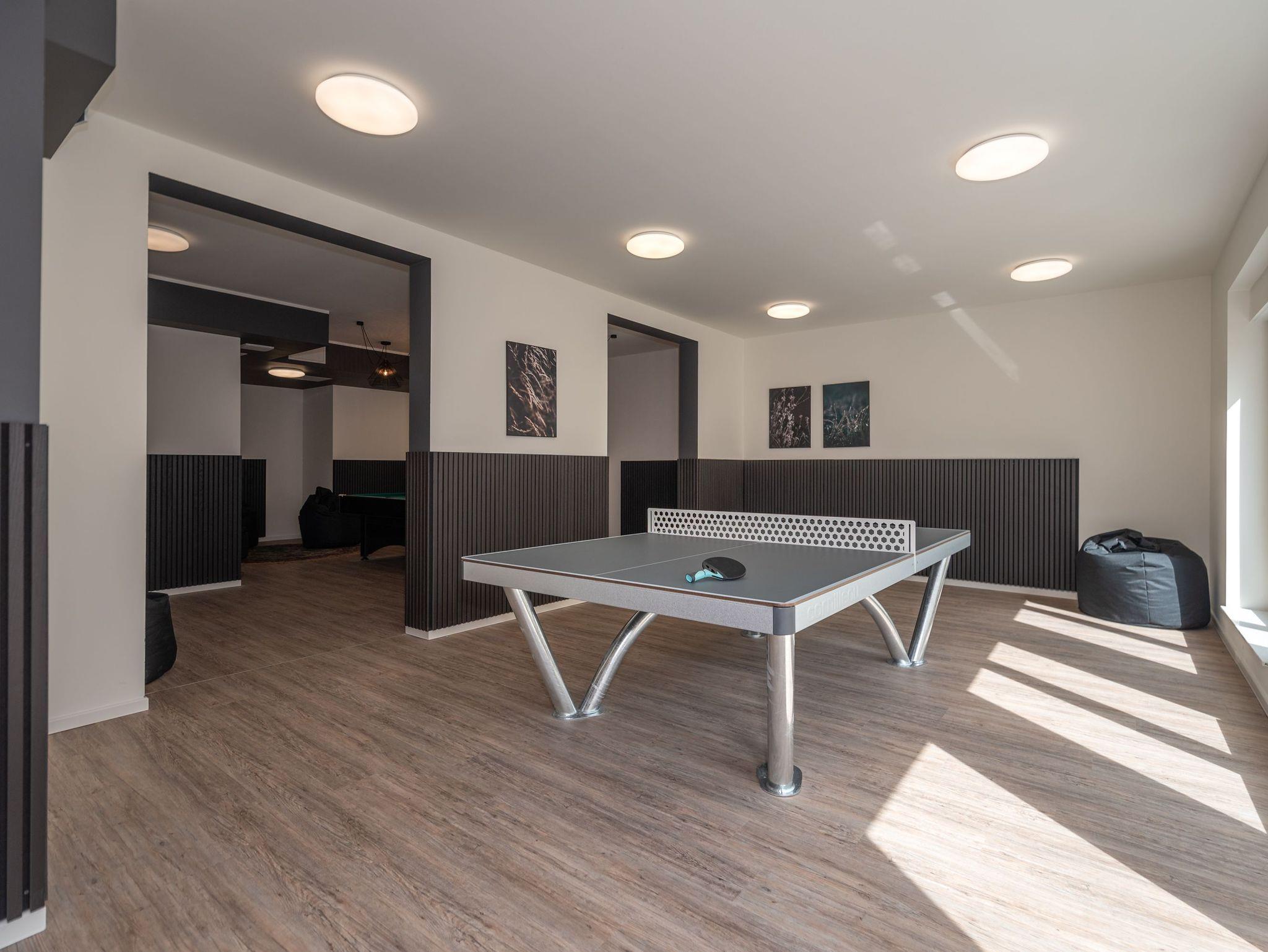 Für aktive oder wetterunabhängige Stunden steht Ihnen im Nebengebäude ein großzügiger Gemeinschaftsbereich zur Verfügung ? mit Billard, Tischtennis, Kicker, Airhockey, einem voll ausgestatteten Fitnessraum sowie einem liebevoll gestalteten Kinderspielraum. Auch dieser Bereich ist für Sie kostenlos nutzbar.