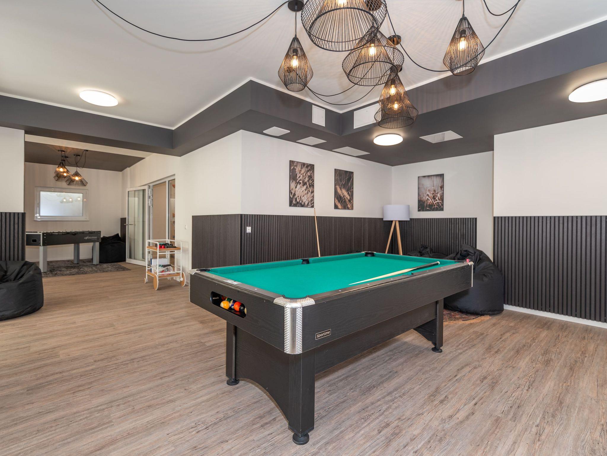 Für aktive oder wetterunabhängige Stunden steht Ihnen im Nebengebäude ein großzügiger Gemeinschaftsbereich zur Verfügung mit Billard, Tischtennis, Kicker, Airhockey, einem voll ausgestatteten Fitnessraum sowie einem liebevoll gestalteten Kinderspielraum. Auch dieser Bereich ist für Sie kostenlos nutzbar.