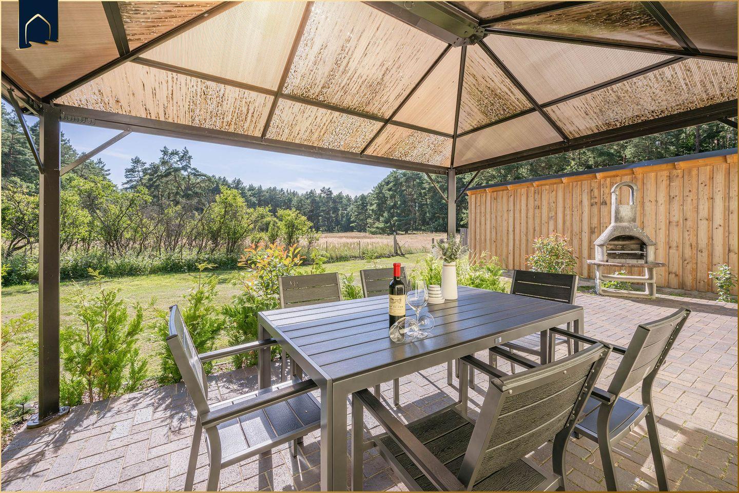 Der Garten ist ein echtes Highlight: Sonnenliegen, Gartenmöbel, Sonnenschirm und eine große Terrasse bieten alles, was Sie für entspannte Stunden im Freien benötigen. Die Kinder können sich auf der großzügigen Liegewiese oder dem Spielplatz austoben, während die Erwachsenen den Abend an der Feuerstelle oder beim Grillen ausklingen lassen. Ein Sichtschutz sorgt für ungestörte Privatsphäre, während Fliegengitter und moderne Ausstattung den Aufenthalt besonders angenehm machen.