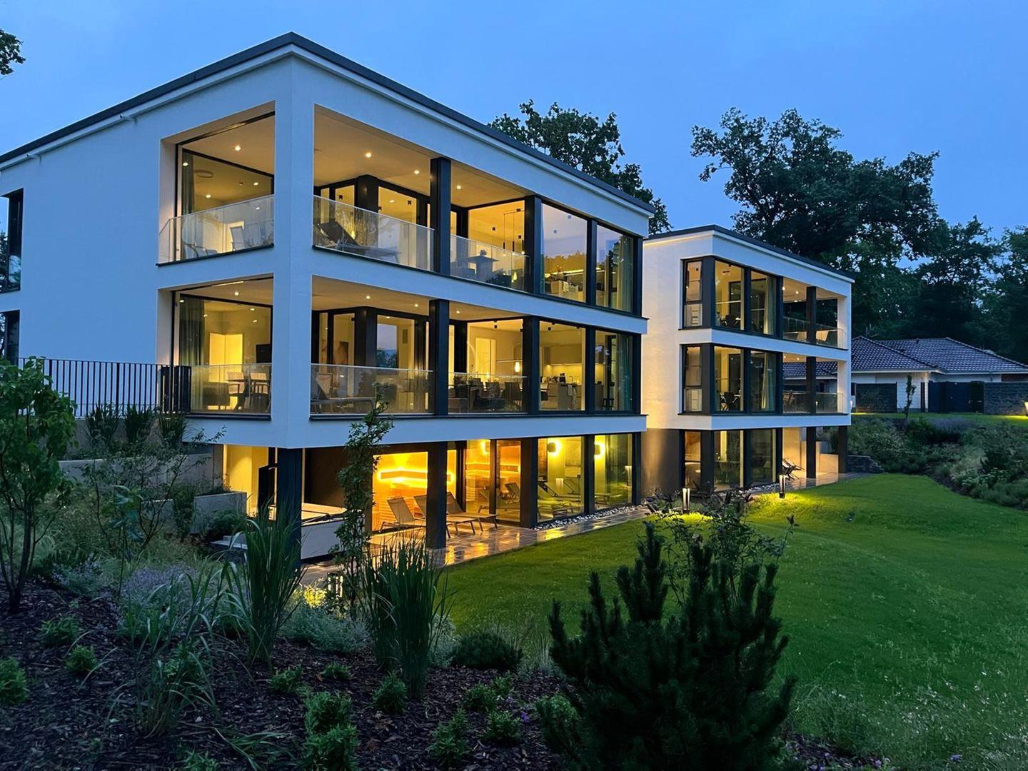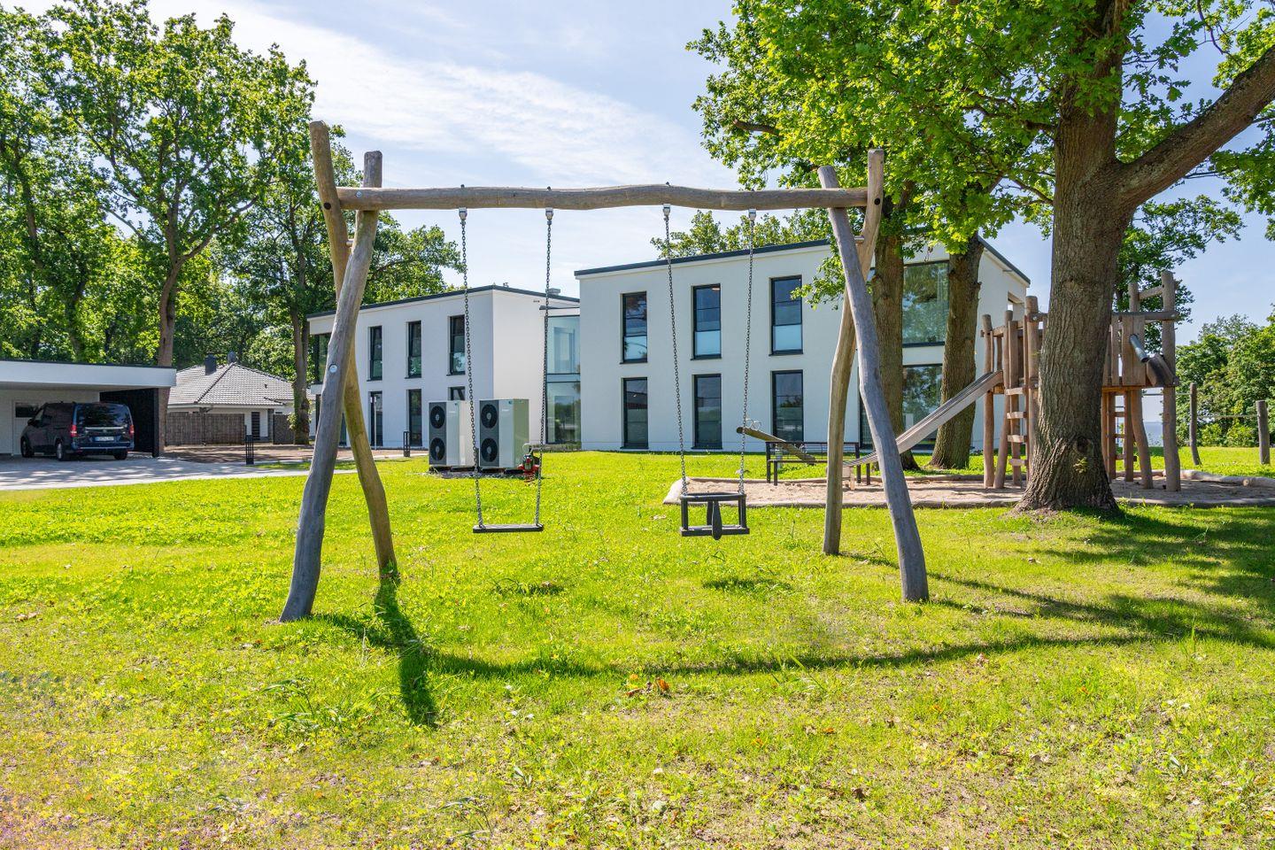 Der moderne Gebäudekomplex mit vier Ferienwohnungen liegt in traumhafter Südlage an der Steilküste des Stettiner Haffs. Gepflegte Außenanlagen und naturbelassene Ebenen ummanteln die hauseigene Haffschlucht mit traumhaftem, privaten Wasserblick.