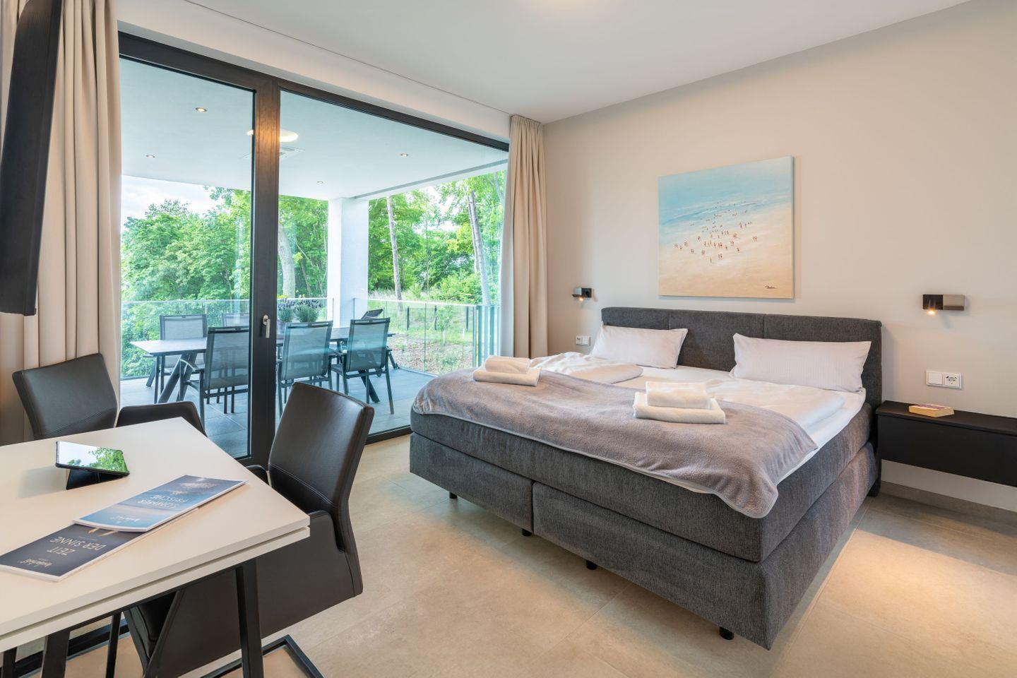 Die barrierefreie und sonnendurchflutete 4-Zimmer-Ferienwohnung liegt im Erdgeschoss. Ein Aufzug ist vorhanden, der jede Etage anfährt. Bis zu sechs Personen und ein bis zwei Kleinkinder bis 2 Jahre (im Babybett) finden in diesem luxuriösen Apartment ausreichend Platz für einen einzigartigen Urlaub auf der Sonneninsel Usedom – geprägt von Weitläufigkeit und absoluter Privatsphäre.