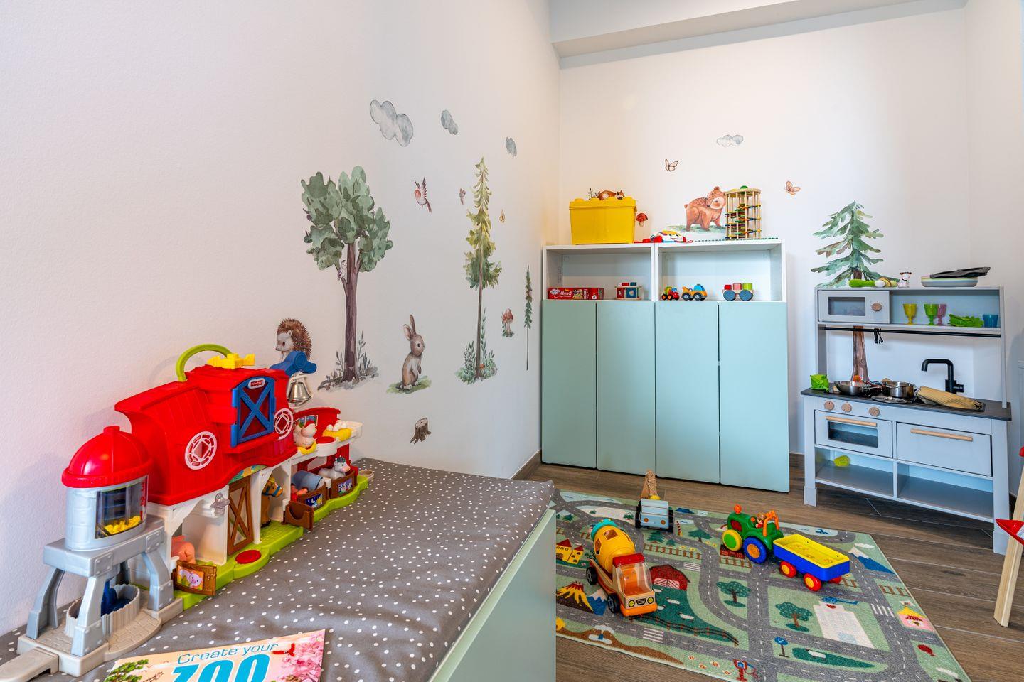 Im Souterrain des Hauses warten exklusive Gemeinschaftsbereiche: Sauna, Whirlpool, Ruheraum, Fitnessbereich, Gemeinschaftsraum und eine liebevoll gestaltete Kinderspielecke ergänzen das Wohlfühlangebot auf stilvolle Weise.