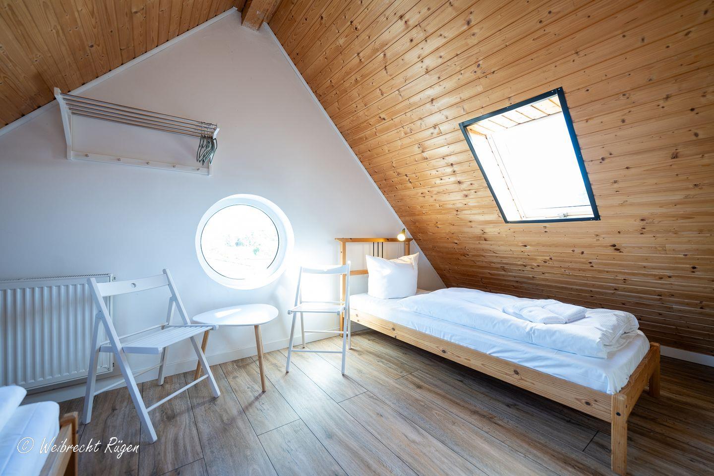 Der gemütliche Spitzboden beherbergt zwei weitere Schlafzimmer mit jeweils zwei Einzelbetten, also der perfekte Rückzugsort für spielende Kinder.