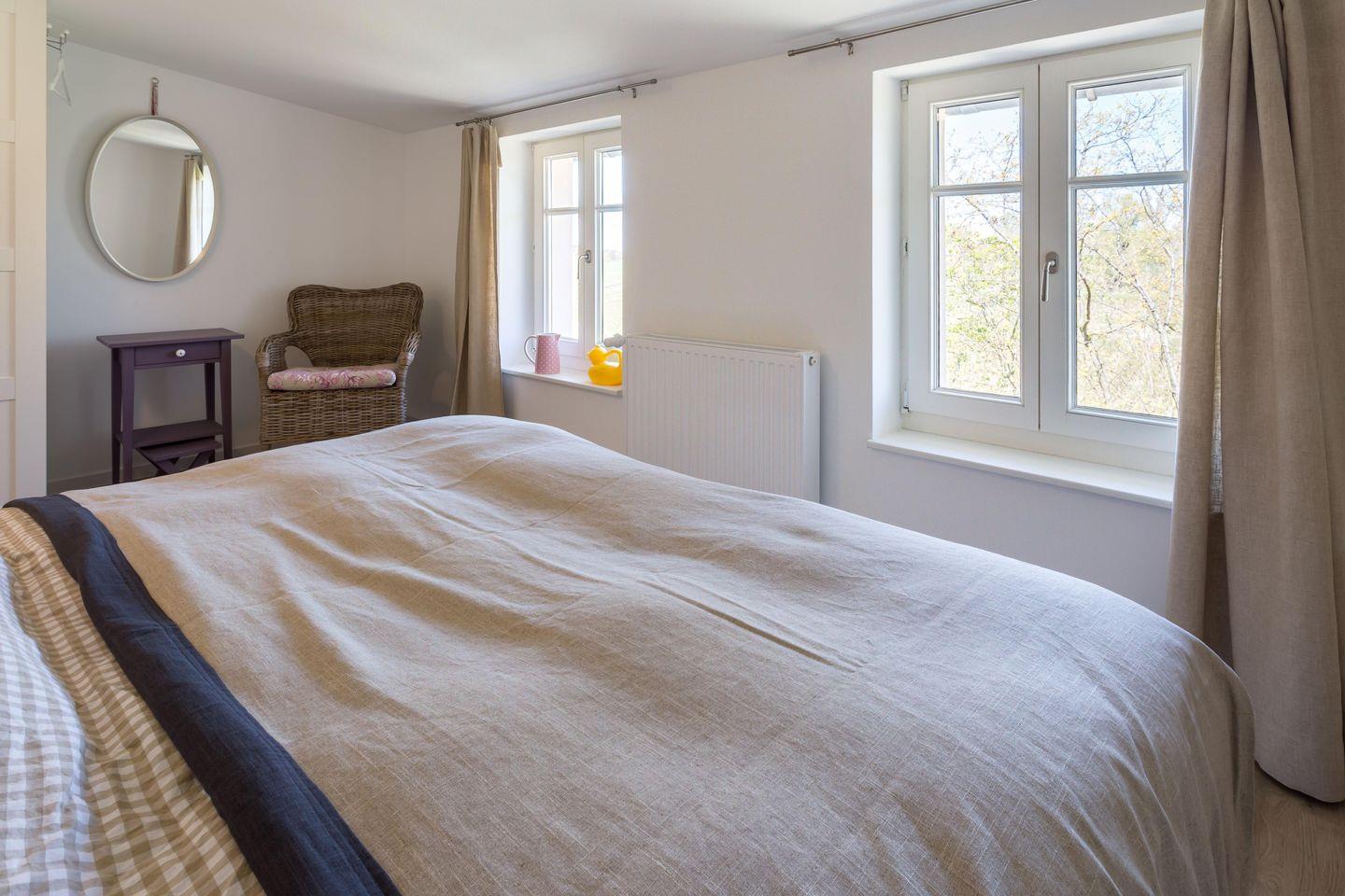 "Das Nest"- den Schwalben so nah - liegt im Obergeschoss des süd-östlichen Bereichs des Hauses und verwöhnt mit viel Licht. Die Wohnung wird über ein eigenes Treppenhaus (hinter dem gemeinsamen Korridor mit Wohnung 2) betreten. Dort befindet sich die Garderobe und der Zugang zum Duschbad.
