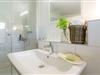 Das separate Bad umfasst Dusche, WC, Waschbecken und Ablagemöglichkeiten. Im Schlafzimmer gibt es einen Kleiderschrank und ein großzügiges Doppelbett (180x200).