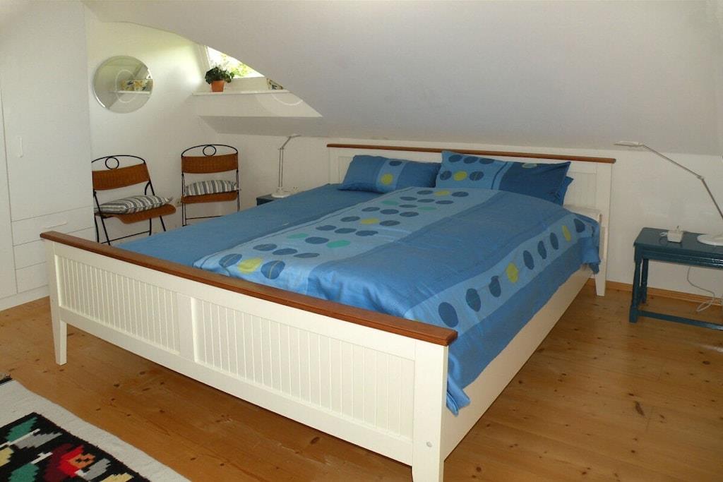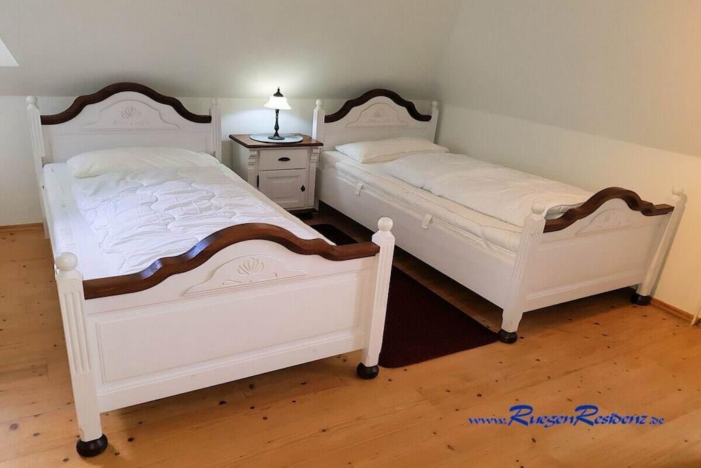 Located in a quiet location on the outskirts of the village, directly on an outskirts of the Rügen Lagoon, you'll find your oasis for exploring the holiday island of Rügen. Under new management, this modern and high-quality furnished semi-detached house offers comfort for four guests. It features two beautiful bedrooms and a bathroom on the upper floor, a living room with a modern kitchenette, a guest toilet, and a glass-enclosed entrance area on the ground floor. Satellite TV, a flat-screen TV, parking space, washing machine, and Wi-Fi are included. A maximum of one dog is permitted (subject to an additional charge) upon consultation with us. A rowing boat is available to guests free of charge and at their own risk. Guests must bring the boat to/from the house and clean it themselves.
