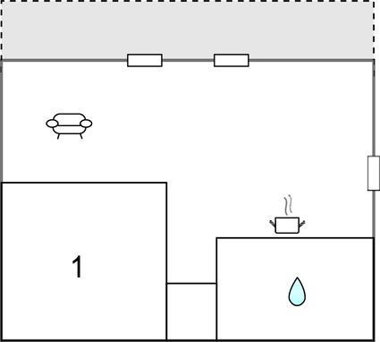 Opholdsstue/køkken - 2 Sovepladser. (Sofa, madras eller lignende).
