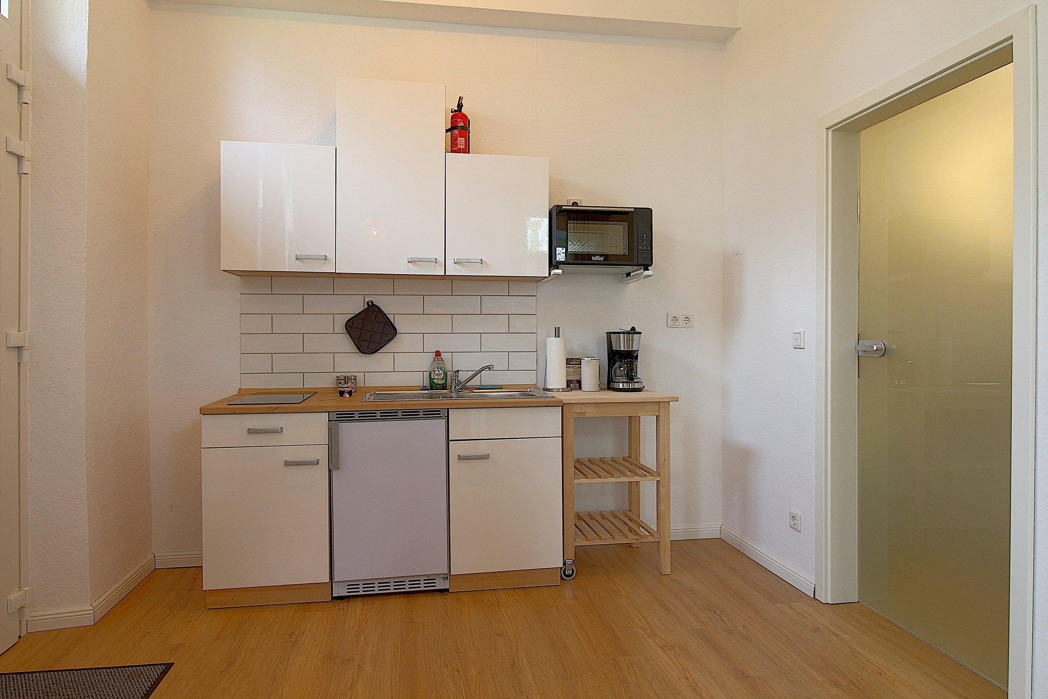Die ebenerdige Wohnung lädt zum Entspannen ein und ist mit einem[nbsp] Essbereich und kleiner Küchenzeile ausgestattet. Sie verfügt über alle notwendigen Geräte und Utensilien, damit Sie kleine Mahlzeiten zubereiten können.