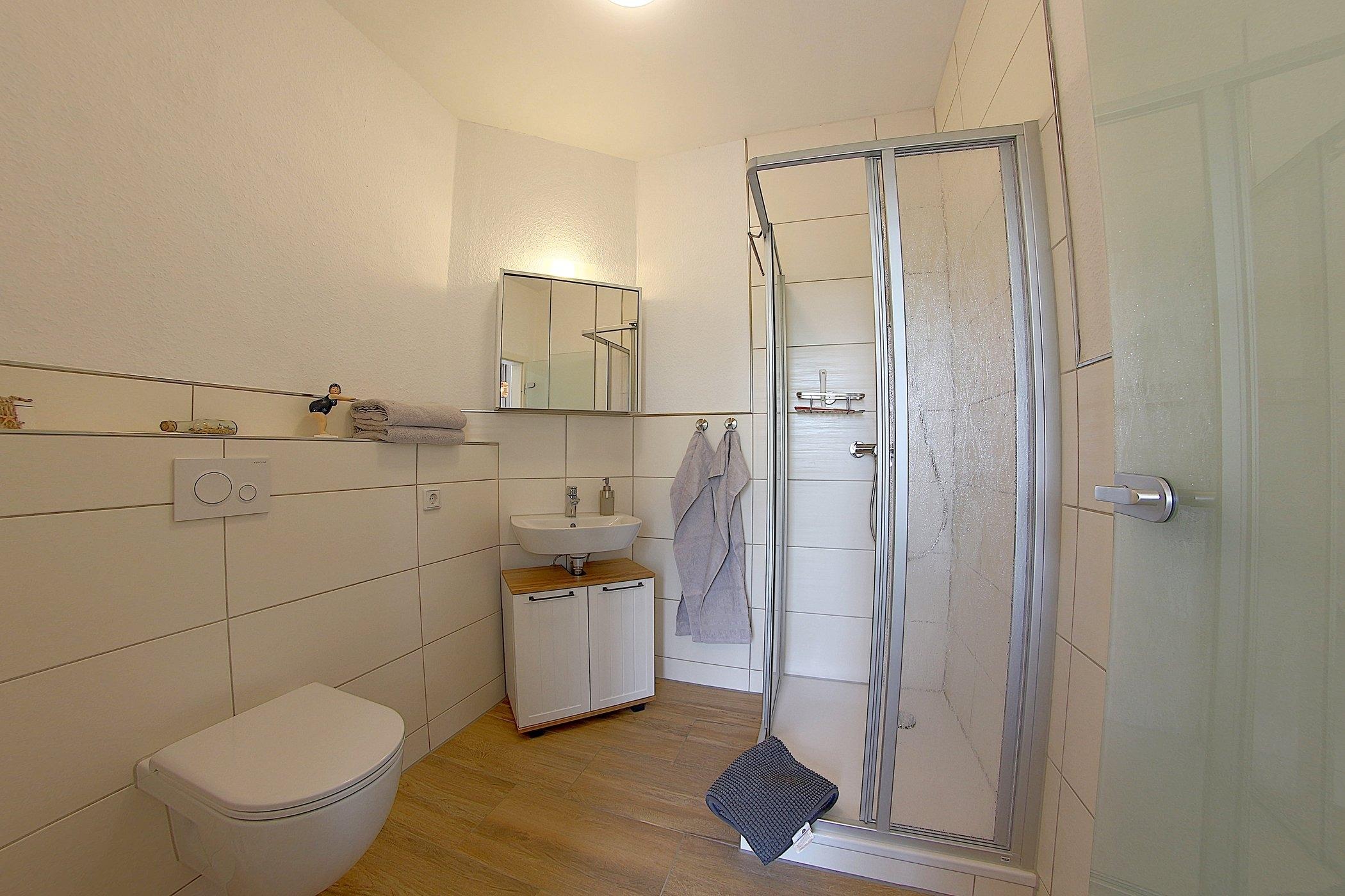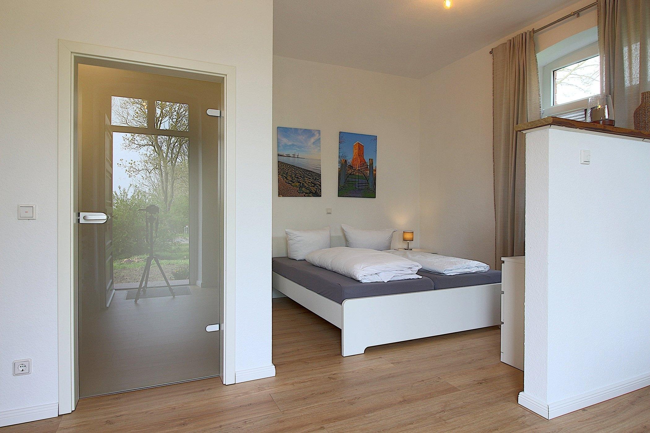 In der Ferienwohnung finden Sie ein komfortables[nbsp] Doppelbett, das für erholsame Nächte sorgt.[nbsp] Das innenliegende Badezimmer ist mit einer Dusche und WC ausgestattet.