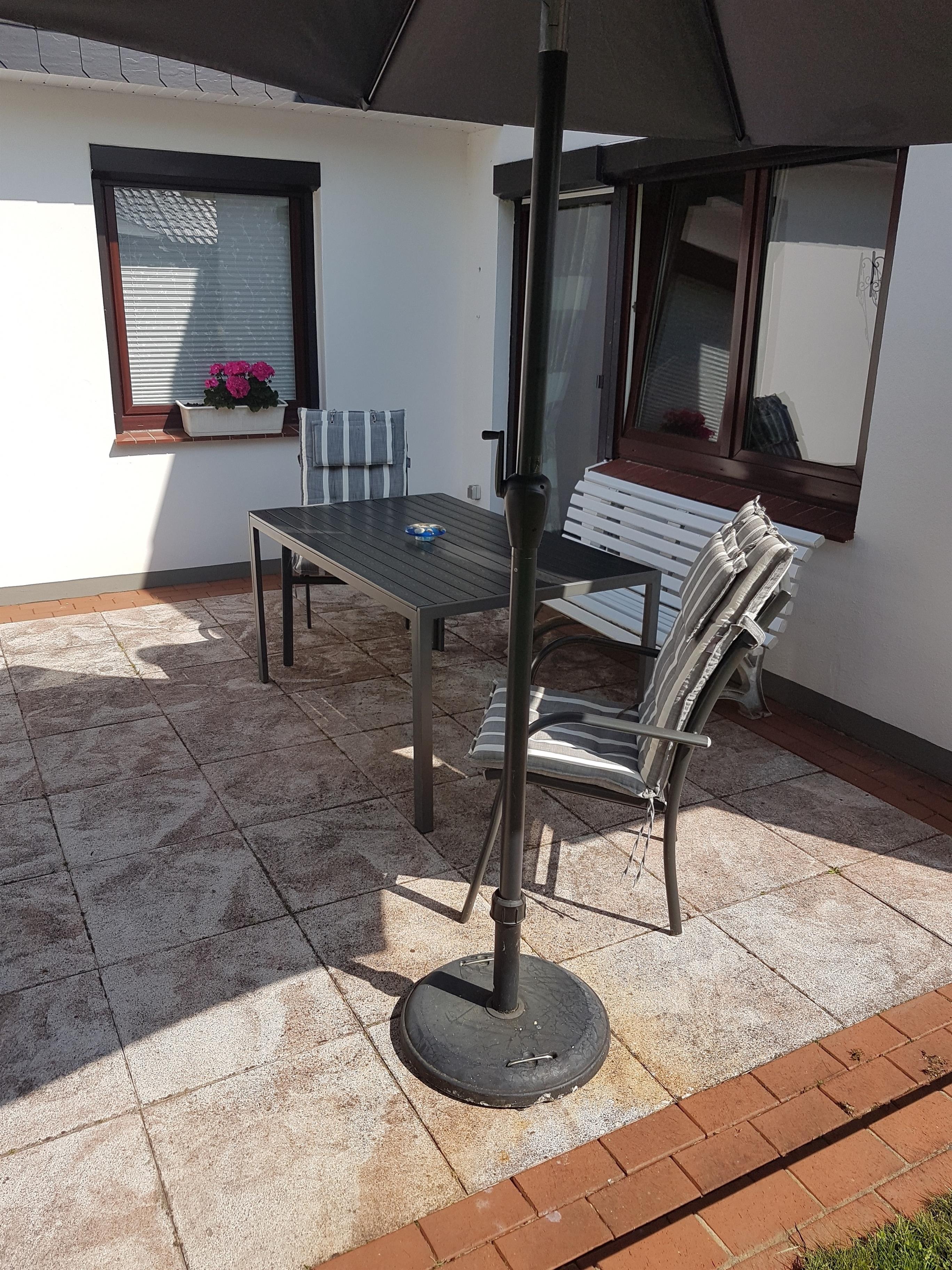 ausgestattet. Vom Wohnzimmer gelangen Sie auf die großzügige Terasse mit Bank, Gartenstühle, Tisch und einen eigenen Strandkorb. Der angrenzende Garten ist mit einem Rasen und blühenden
