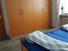 Auf der rechten Seite des Flurs gelangen Sie in das 1. Schlafzimmer. Dieses ist ausgetattet mit einem Einzelbett 90 x 200 cm groß, Nachtschrank, Kleiderschrank, Lederlesesessel, kleinem Tisch und einem TV-Flachbildschirm.