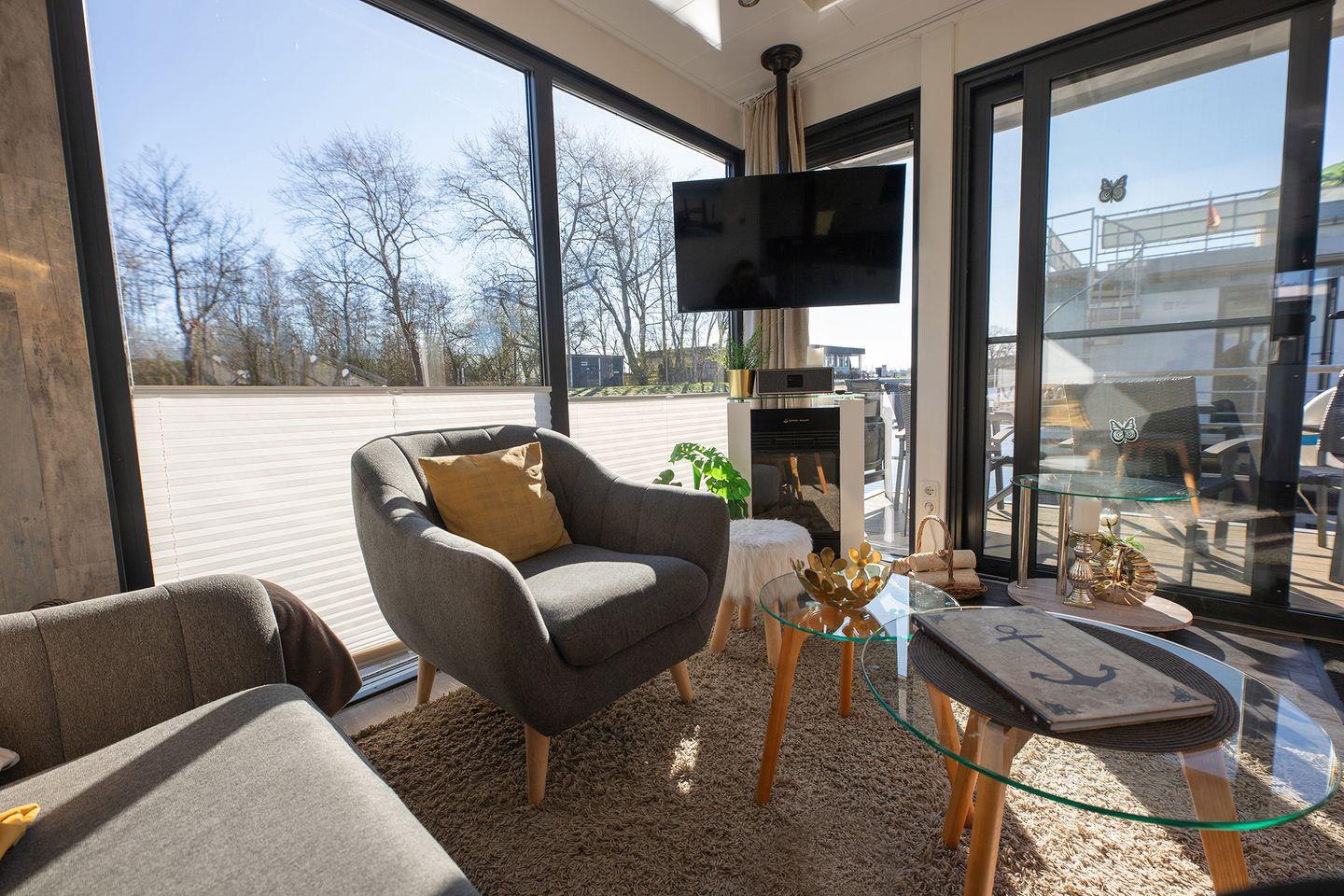 Urlaub auf dem festliegenden Hausboot, ganz ohne Bootsführerschein.