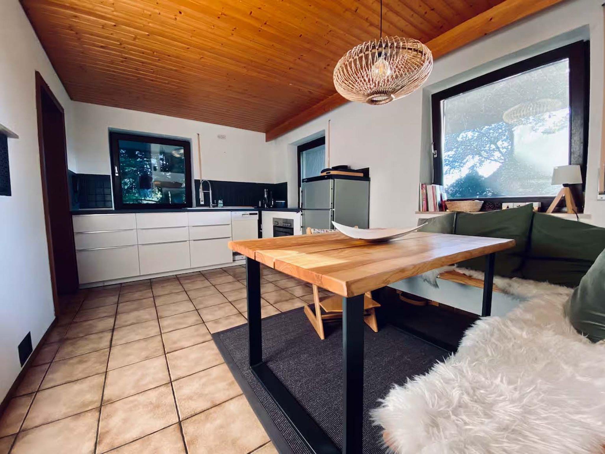 Euer Apartment KUNO liegt idyllisch am Dorfesrand im Fichtelgebirge und bietet eine ruhige Auszeit inmitten der Natur. Von hier aus könnt ihr direkt mit dem Mountainbike starten oder die umliegenden Wanderwege erkunden. Die großzügige Terrasse mit direktem Zugang zum schönen Garten und Blick auf einen kleinen Naturweiher lädt zum Entspannen ein. Das Apartment ist ideal für Paare, Freunde und Familien, die fernab vom Alltag gemeinsame Zeit verbringen möchten. Kuschelige Abende vor dem Kachelofen oder laue Sommernächte auf der Terrasse machen euren Aufenthalt unvergesslich. Die Ausstattung umfasst ein Schlafzimmer mit Boxspring-Doppelbett und ausziehbarem Bett, einen Wohnbereich mit Schlafcouch und Smart TV sowie eine moderne Wohnküche. Das Badezimmer bietet eine Badewanne mit integrierter Dusche. Fußbodenheizung und schnelles WLAN sind ebenfalls verfügbar und die ruhige Umgebung sorgt für Erholung pur.