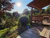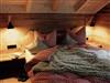Ein Holzsteg führt zur im Freien gelegenen Sauna, die zum Chalet gehört.