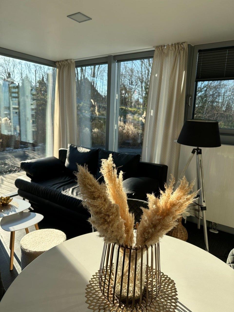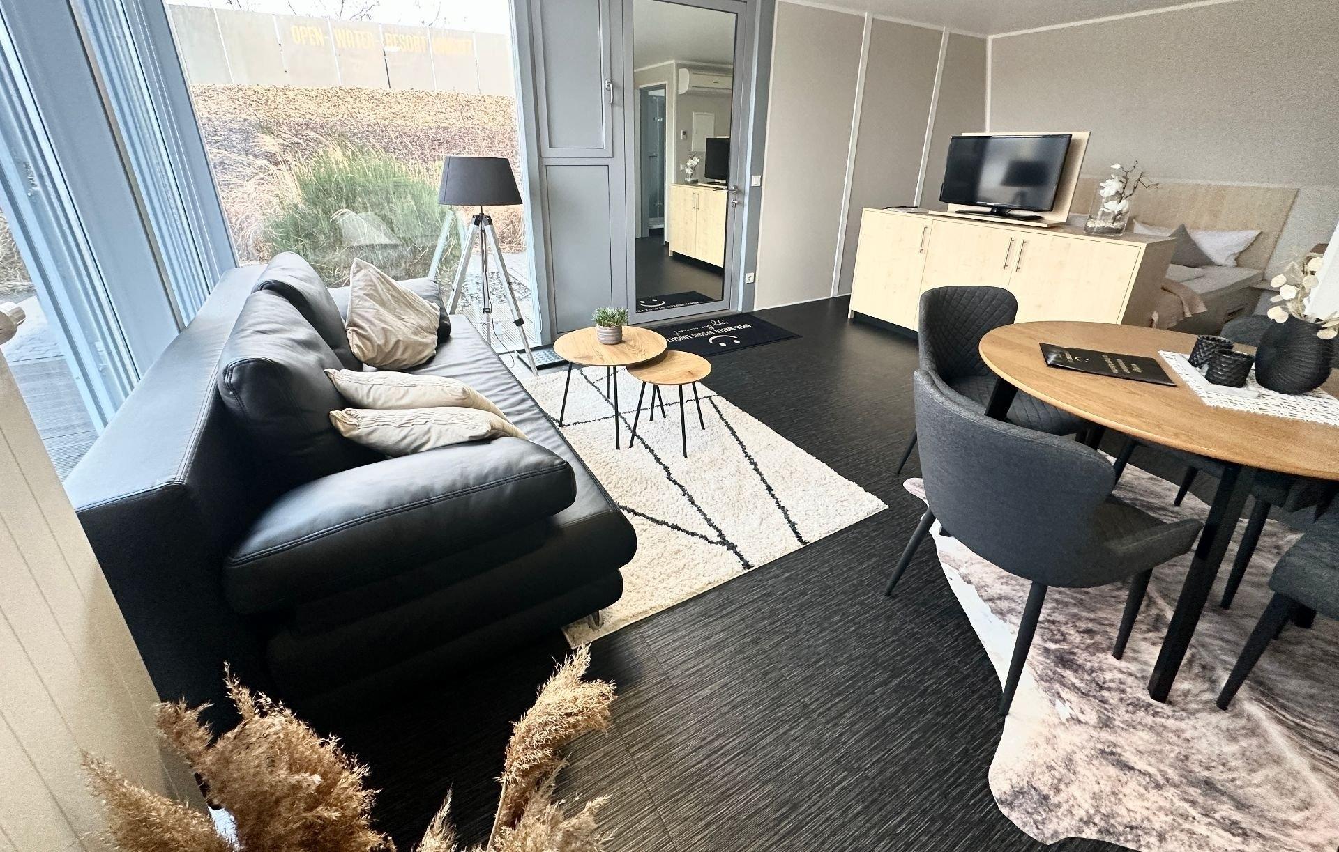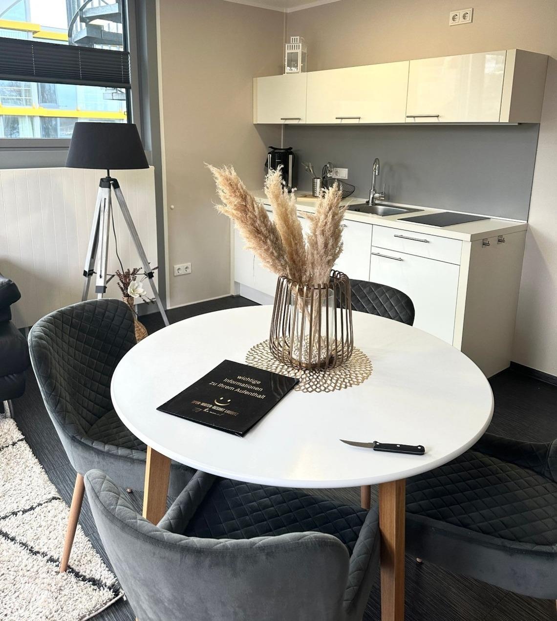 Genießen Sie in unseren komfortablen, geschmackvoll eingerichteten und lichtdurchfluteten Appartements Düne Ihren Aufenthalt im Lausitz Resort. Diese Appartements befinden sich im 1. Obergeschoss des Strandhauses und bieten auf ca. 35 m² Platz für 2 Personen. Ausstattungsmerkmale:Wohn-/Schlafbereich voll klimatisiertDoppelbett im abgegrenzten WohnbereichWohnsofaTV Flachbildschirm mit Radiooffene, voll ausgestattete Küche (Geschirrspüler mit Startpaket, Kühlschrank, 2 Ceran - Kochfelder, Bistroofen, Kaffeemaschine, Wasserkocher), diverse KüchenutensilienBadezimmer mit Dusche/WC, Schminkspiegel und Föhnausgestattet mit Bettwäsche und Handtücher Sonnenterrasse mit Sonnenliegen und EssbereichWLAN inklusiveein kostenfreier PKW-StellplatzHundemitnahme nur unter Voranmeldung möglich