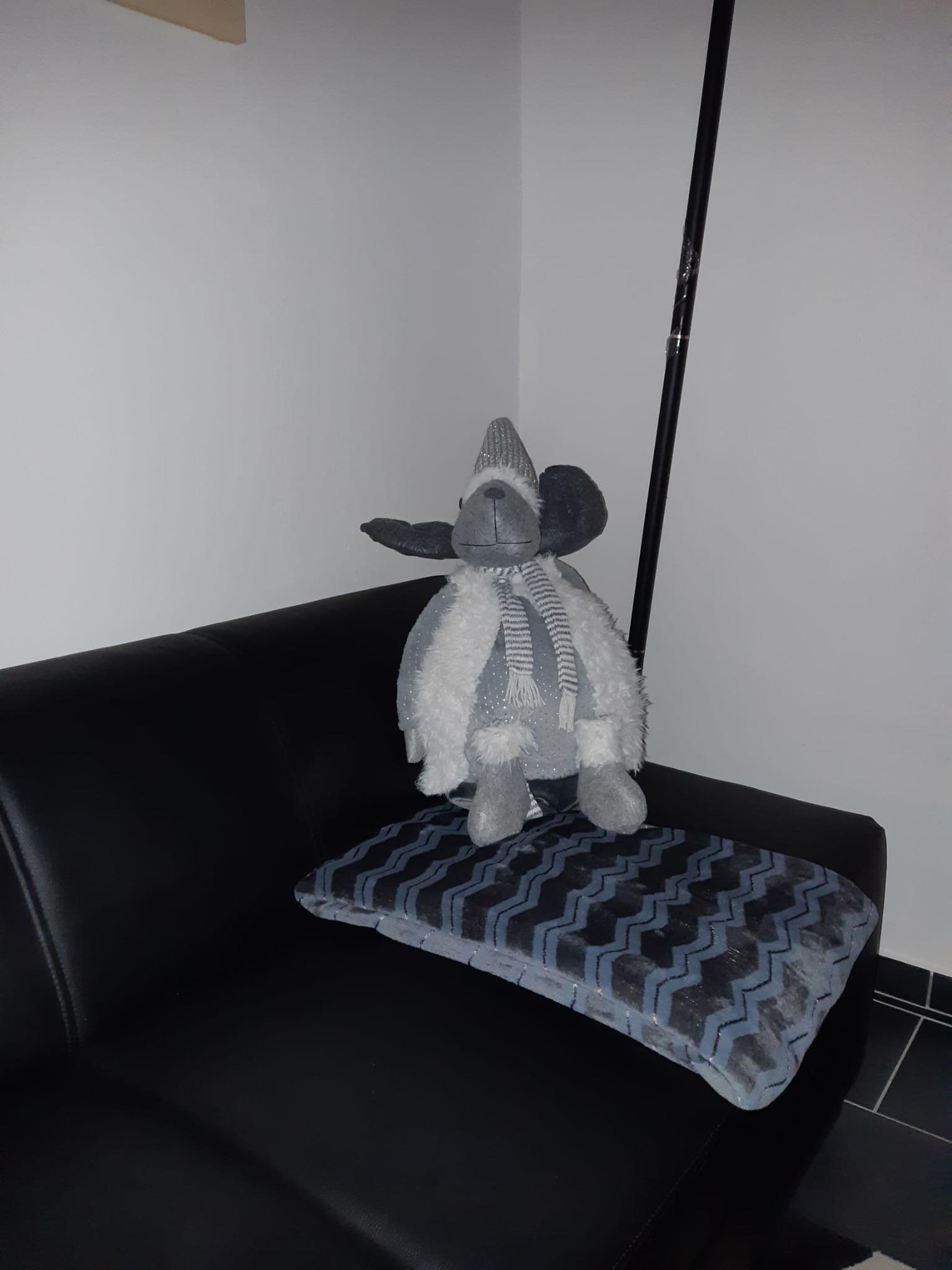 Im Wohnzimmer lädt eine Riesige Eckcouch zum Kuscheln ein, zieht man Sie aus