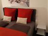 Das Schlafzimmer ist mit einem sehr großen Boxspringbett ausgestattet.