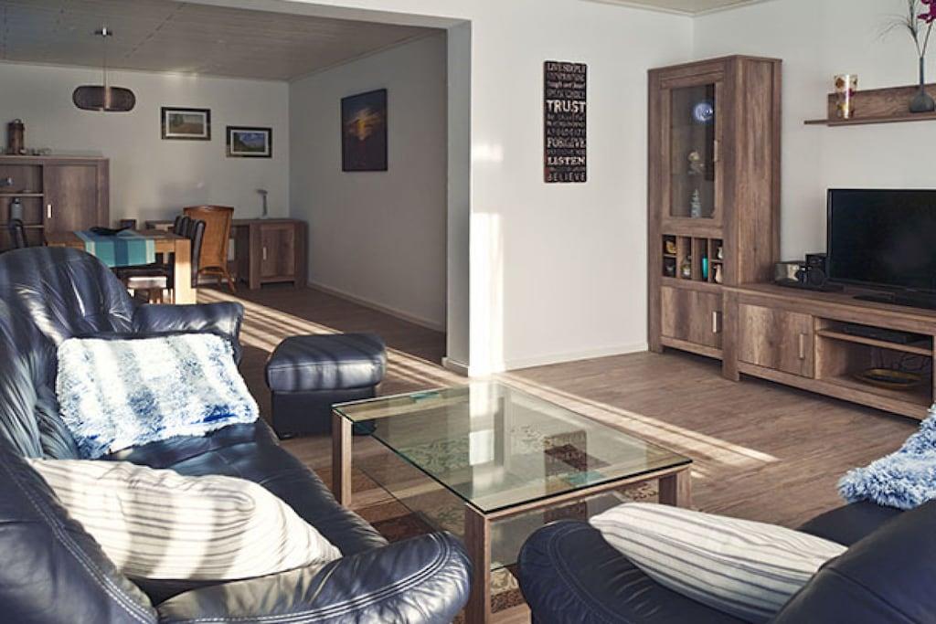 Send kun en forespørgsel, hvis du er oprigtigt interesseret. Vi opkræver høje gebyrer alene for forespørgsler. Tak! Prisvenlig luksus: En familievenlig, komfortabel, ikke-ryger lejlighed venter dig med plads til 2-4 voksne og et spædbarn. Det 125 kvm store boligareal byder på rigelig plads til alle aldre. To soveværelser (et med tv), et meget veludstyret køkken, en rummelig opholds- og spisestue samt et badeværelse med attraktive armaturer, bruser og badekar sikrer masser af plads til årets bedste uger. Lejligheden blev fuldstændig renoveret og nyindrettet med stilfulde møbler i januar 2015. Opholdsstue med Blu-ray-afspiller, fladskærms-tv, Wii-konsol, stereoanlæg og Wi-Fi. En 600 kvm stor, kærligt anlagt have er til din eksklusive brug. Ferielejligheden hedder "Bürgerpark". Bemærk venligst: Garagen er kun til opbevaring, f.eks. til cykler, da den har meget lavt til loftet og også bruges til vores egen opbevaring.
