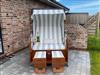 - Terrasse mit Gartenmöbeln, Sonnenschirm, 2 Sonnenliegen und Grill