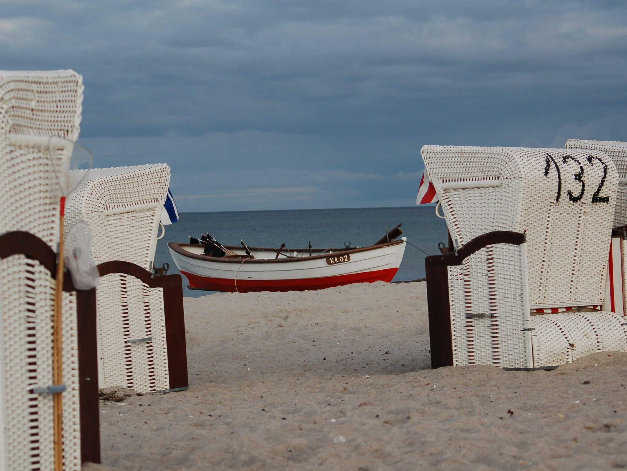 Ein geschützter Garten mit Strandkorb, Gartenliegen und Sitzmöbeln lädt zum Entspannen, Sonnenbaden und Grillen ein.
