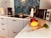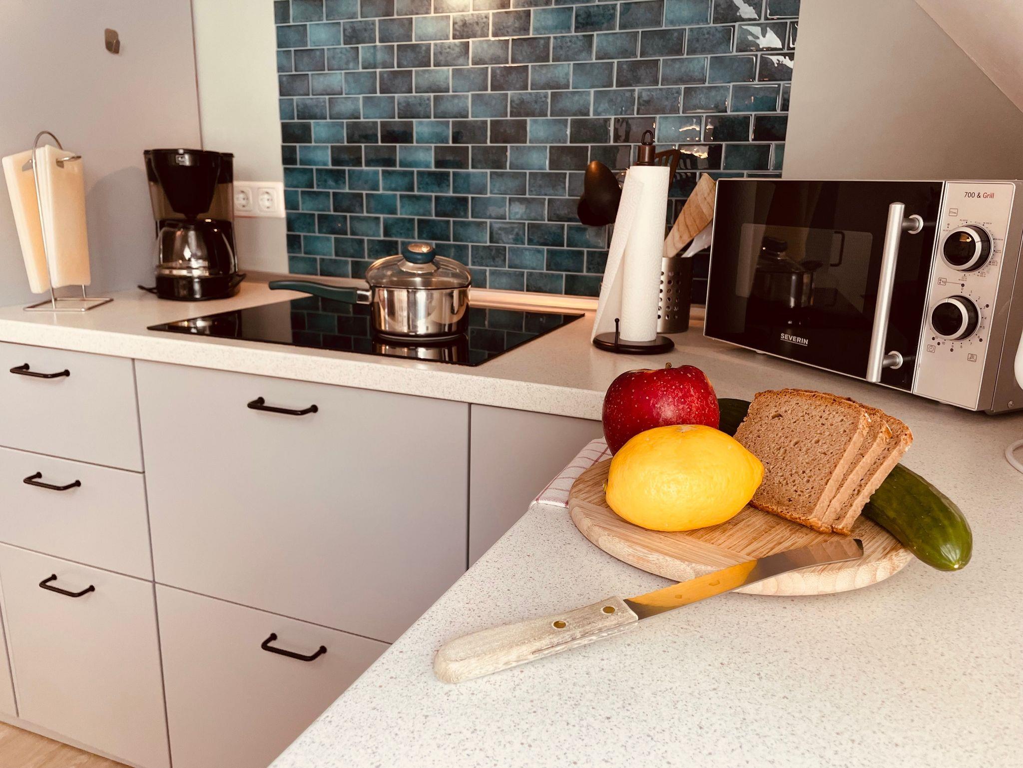 Die geräumige Wohnküche lädt zum geselligen Treffpunkt ein. Die zwei großen Tische bieten Platz für unterschiedliche Aktionen, so dass beispielsweise an einem gegessen und an dem anderen gespielt werden kann.