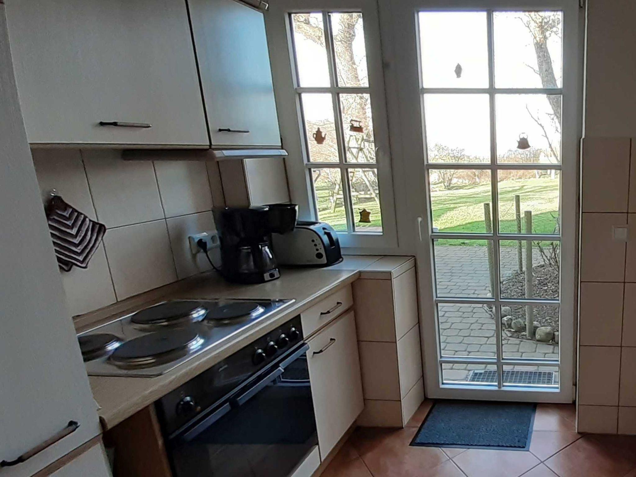 - separate Küche mit Spülmaschine, Backofen, Mikrowelle, Wasserkocher und Kaffeemaschine sowie einen direkten Zugang in den Garten und auf die Terrasse mit Blick auf das Noor