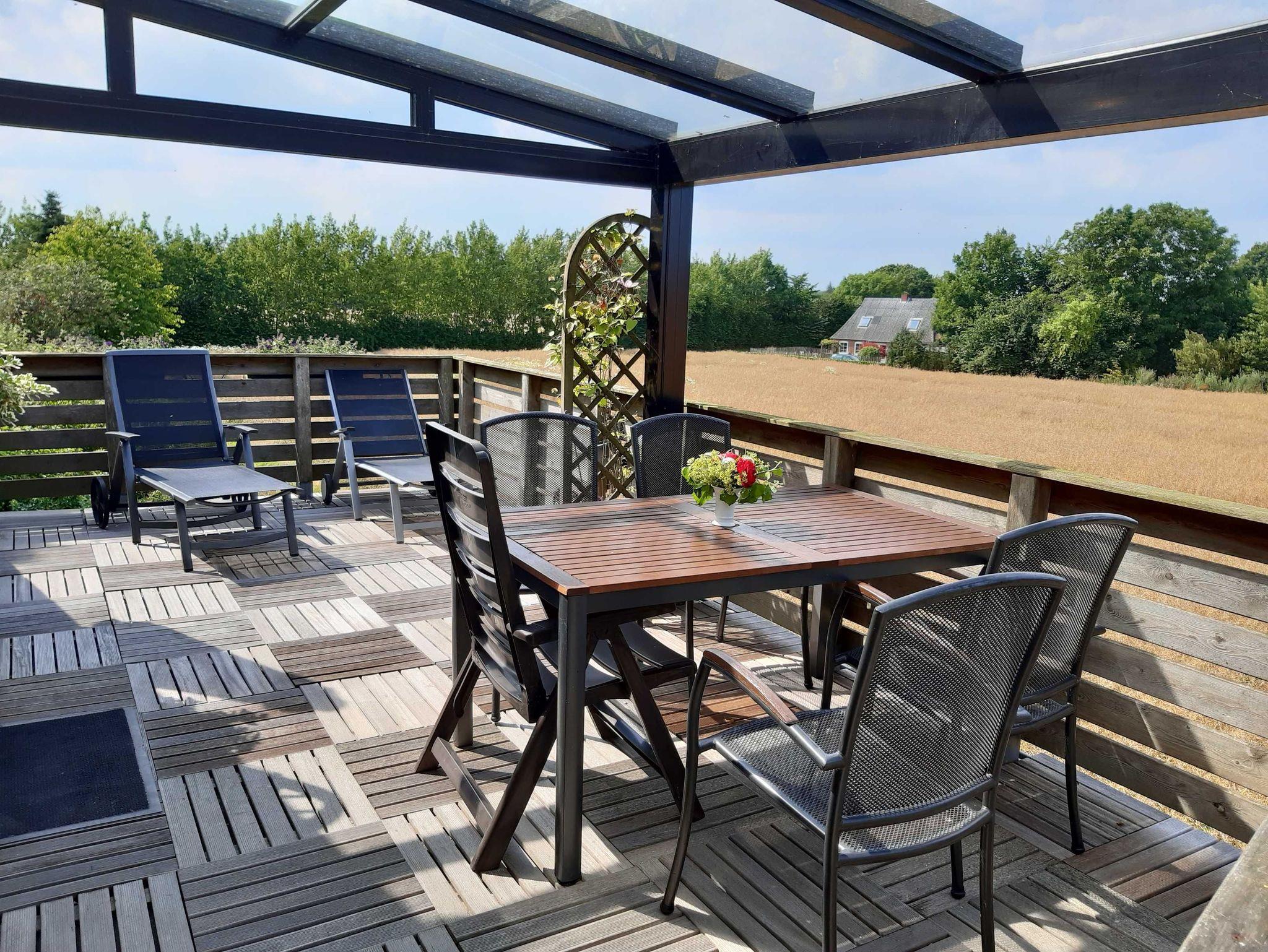 Die Ferienwohnung Vossberg für bis zu 4 Personen (2 Erwachsene und 2 Kinder bis 14 Jahren) befindet sich im Obergeschoss und ist über eine Außentreppe zu erreichen. Freiliegende Hollzbalken und eine Holzdecke schaffen ein behagliches Ambiente.