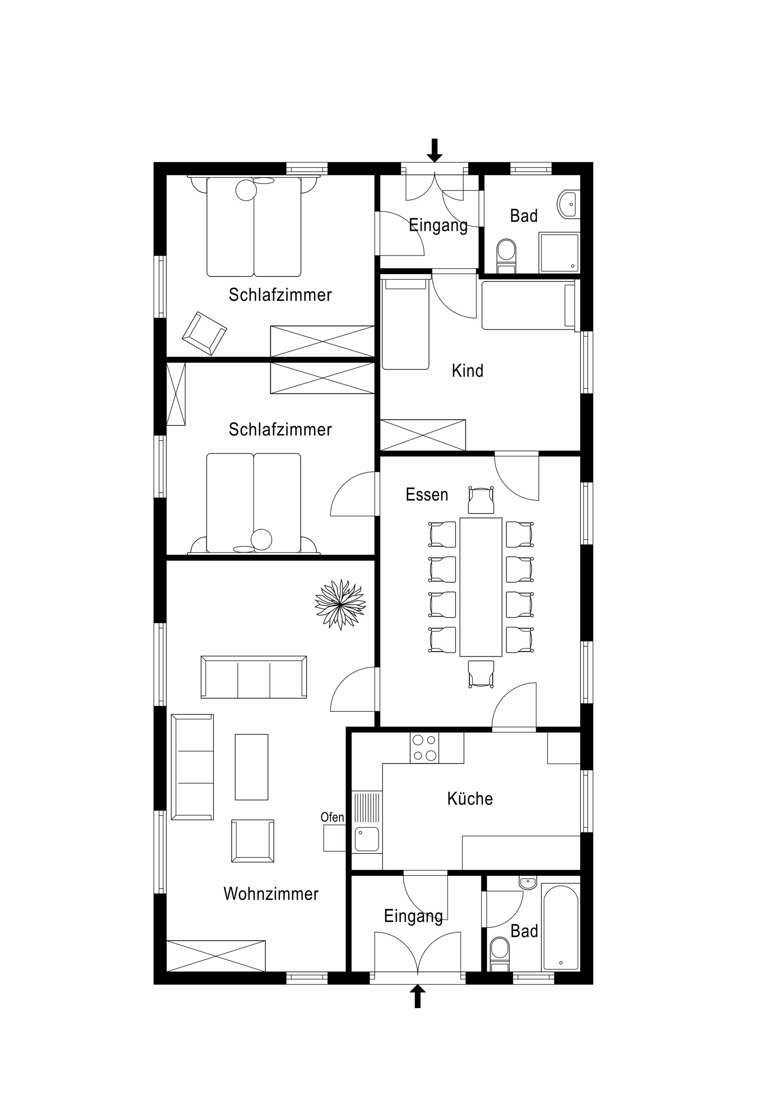 116 qm auf einer Ebene mit zwei Hauseingängen