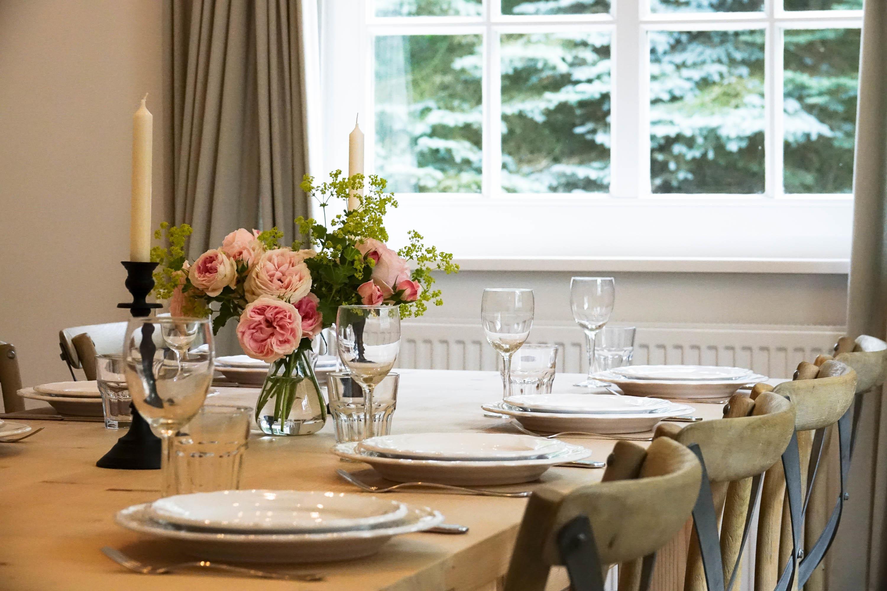 EG: großes Wohnzimmer mit Kaminofen und Zugang zu Terrasse und Garten, Esszimmer, Küche, zwei Bäder (eines ensuite zu einem Doppelschlafzimmer mit Dusche, eines mit Duschbadewanne), zwei Doppelschlafzimmer