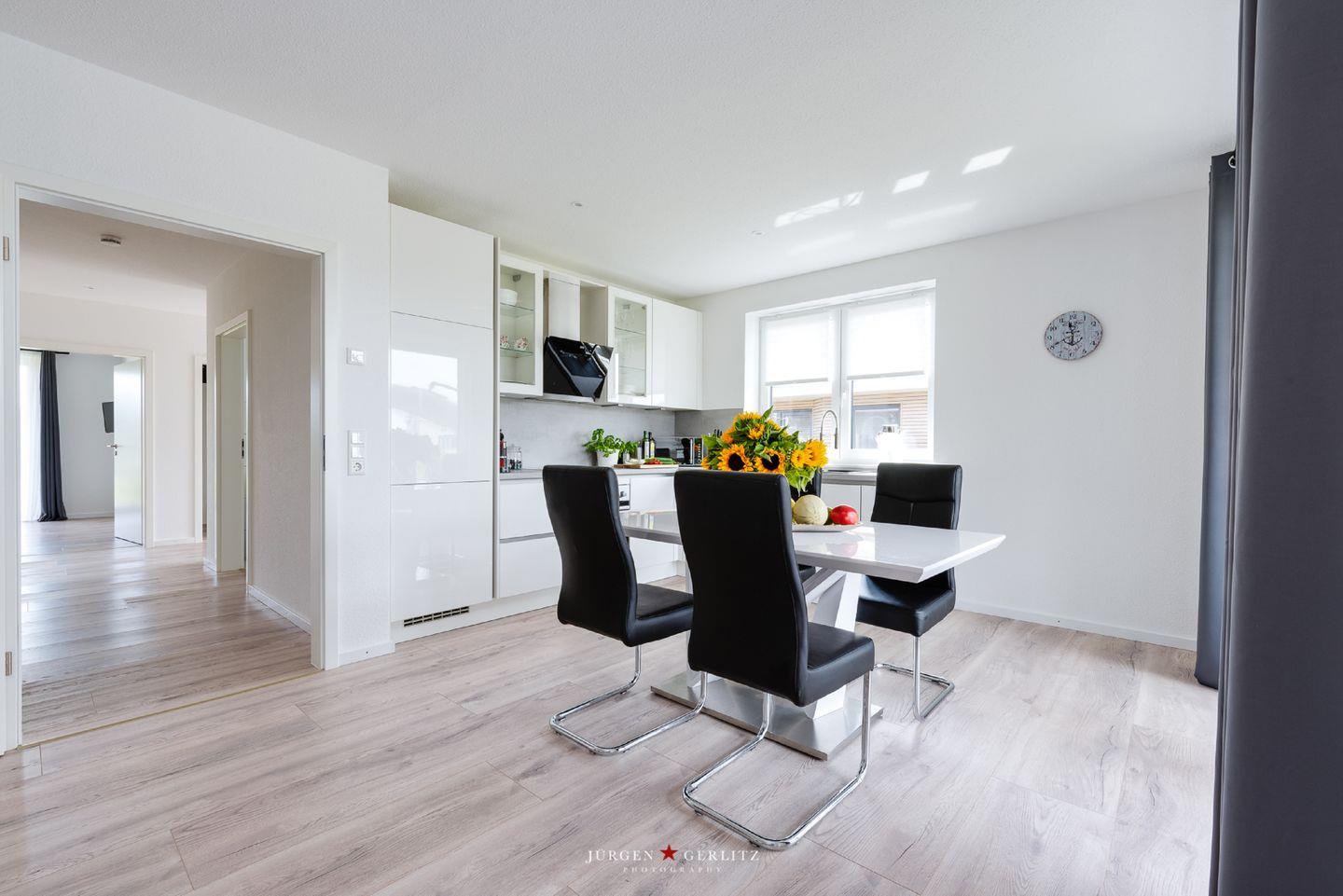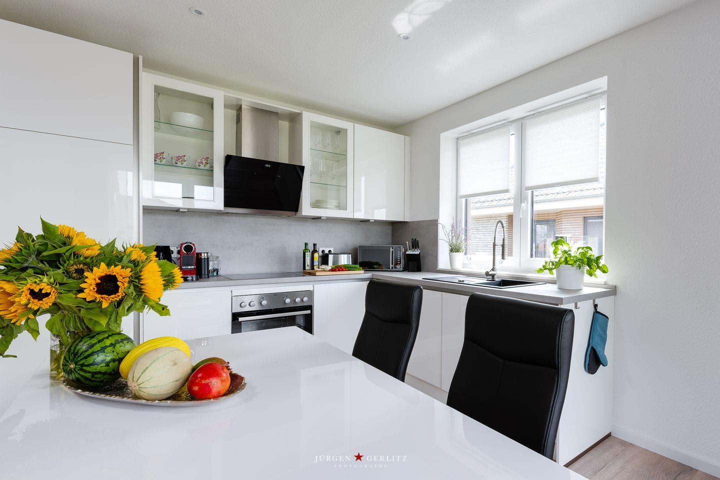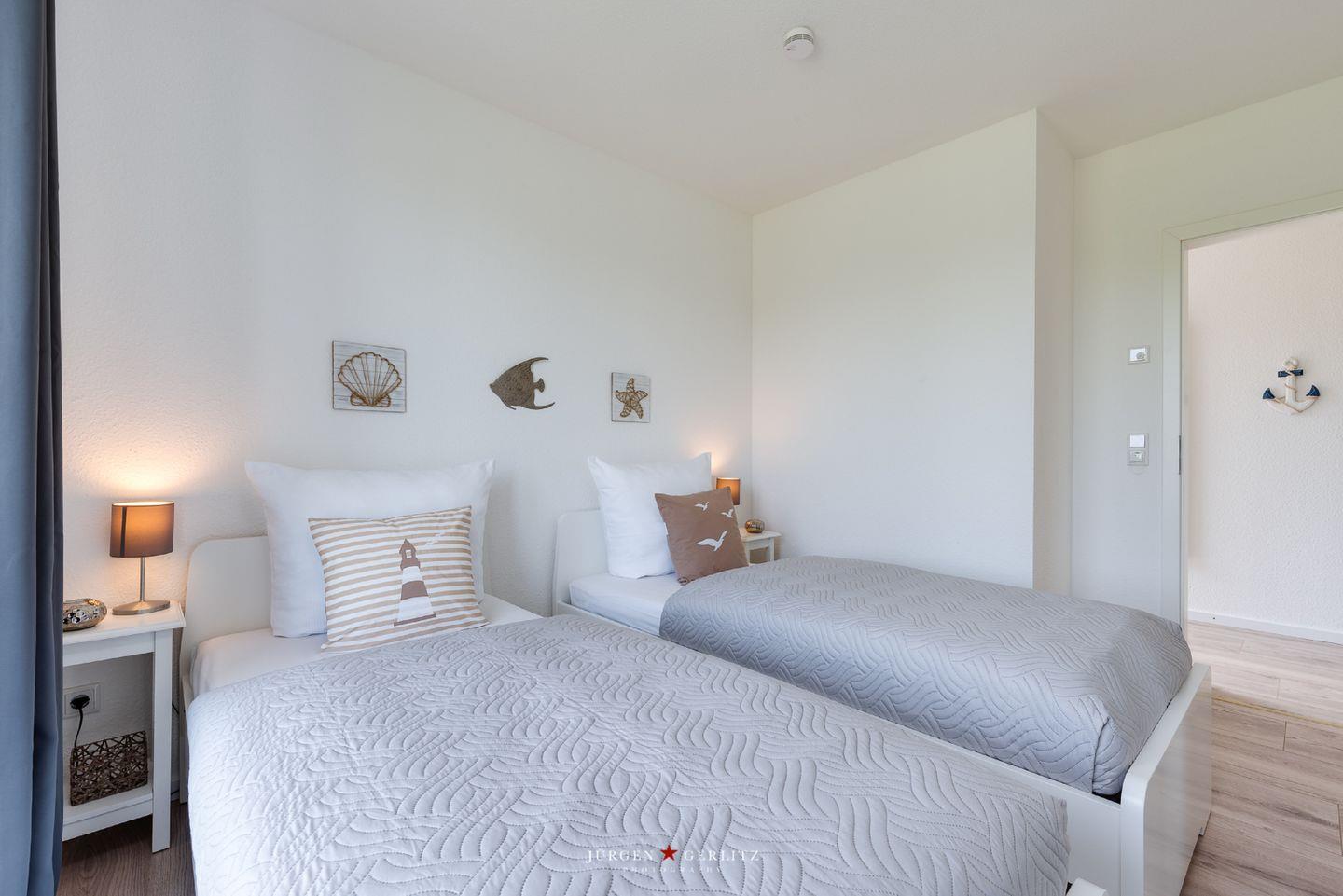 Das Haus ist mit allem ausgestattet, was Ihren Urlaub perfekt macht. Die bodentiefen Fenster in Wohn- und Schlafbereichen spenden viel Sonnenlicht, auch in der Leseecke im zusätzlichen Erker. Das erste Schlafzimmer verfügt über ein großes Boxspring-Doppelbett (180x200cm), das zweite Schlafzimmer verfügt über 2 Einzelbetten. Somit ist eine Belegung mit bis zu 4 Personen möglich. Die vollausgestattete, hochwertige Küche lädt zum Kochen ein und bietet mit integriertem Esszimmer mit 4 Sitzplätzen ein schönes Platzangebot. Die schöne Terrasse mit eigenem Garten und Holzkohlegrill eignet sich zudem perfekt zum Essen und zum ausgiebigen Sonnenbaden. Das Badezimmer ist ausgestattet mit einer großzügigen, hellen und ebenerdigen Dusche. Darüber hinaus steht Ihnen ein Gäste-WC, sowie ein Flur mit Garderobe und Sitzbank zur Verfügung. Genießen Sie Ihre Zeit in einem Urlaubs-Zuhause vom Feinsten!