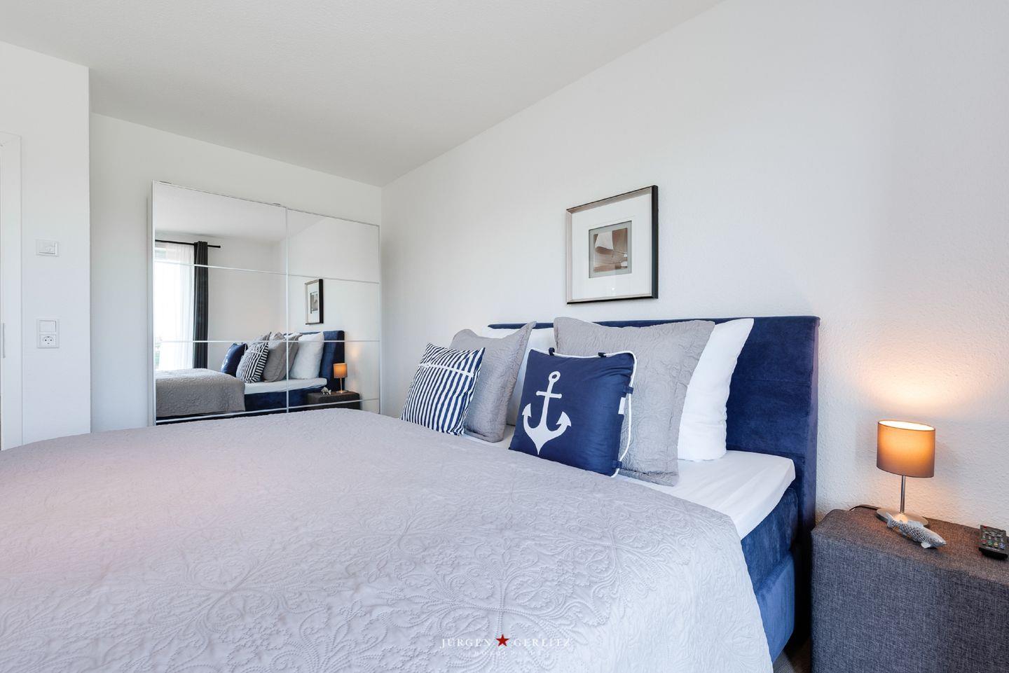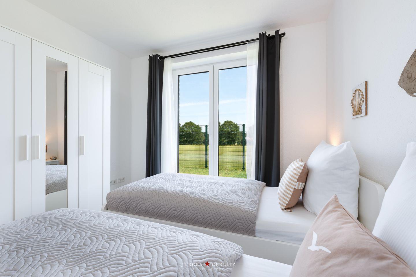 Die bodentiefen Fenster in Wohn- und Schlafbereichen spenden viel Sonnenlicht. Die vollausgestattete Küche mit Essplatz ist zum Wohnbereich hin offen. Die Terrasse mit Garten bietet Ihnen einen Grill und ist möbliert. Das 1. Schlafzimmer verfügt über ein Boxspring-Doppelbett, das 2. Schlafzimmer verfügt über 2 Einzelbetten. Das Badezimmer ist einer ebenerdigen Dusche ausgestattet. Darüber hinaus steht Ihnen ein Gäste-WC zur Verfügung.