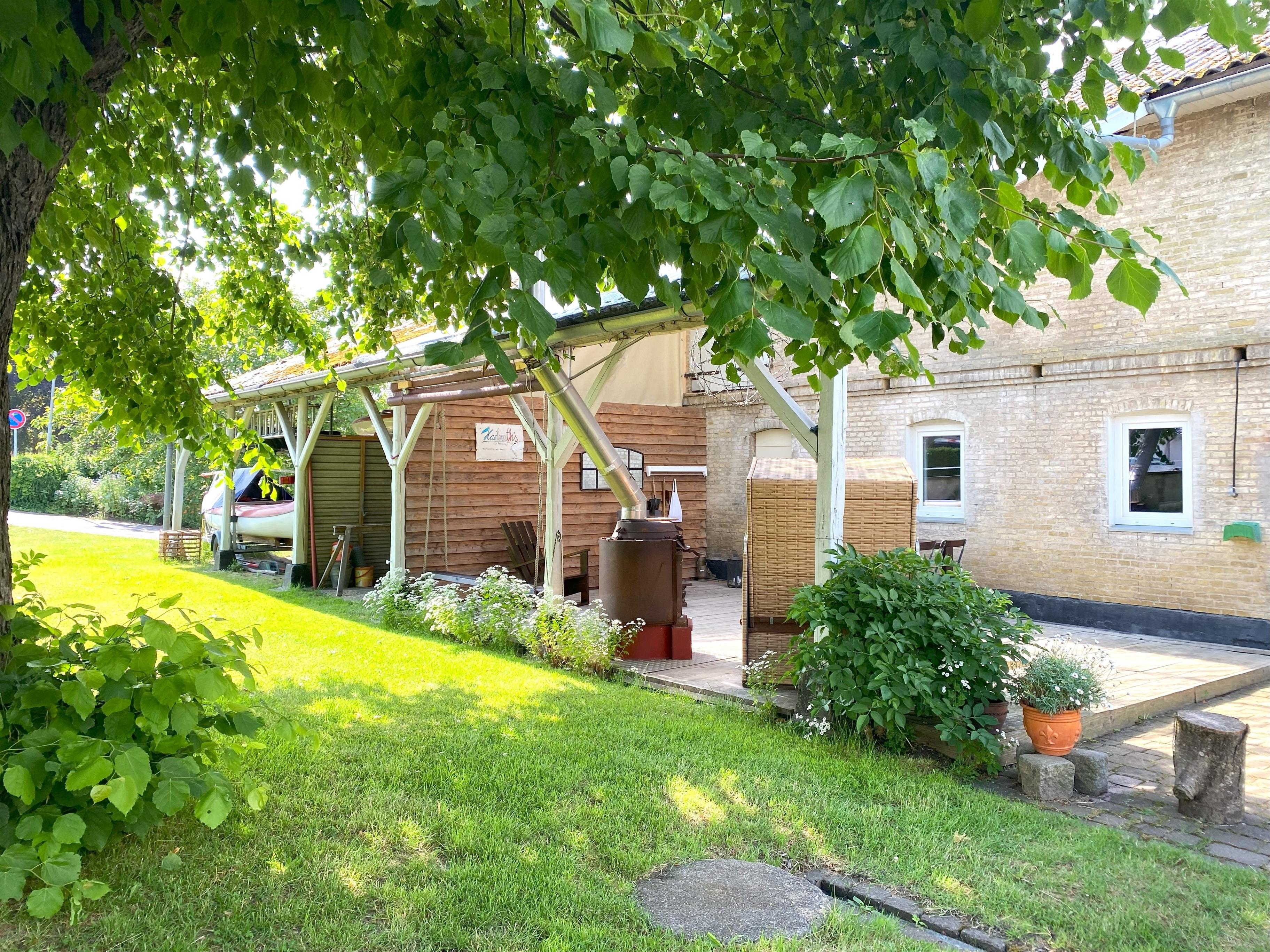 Die 51m²-Wohnung ist ein ausgebauter Kuhstall, von dem allerdings nur noch die Außenfassade zeugt. Mauern, Boden und Decke sind erneuert, das großzügige Bad ist modern ausgestattet und die Möblierung in einem frischen, klaren Stil gehalten. In dieser 1 ½ Zimmerwohnung lässt sich ein Urlaub in jedweder Länge und Ausrichtung genießen. Selbstversorger können in dem geräumigen Wohnküchenbereich mit Leidenschaft kochen oder es sich auf dem Sofa gemütlich machen. Draußen befindet sich eine große überdachte Terrasse mit Tisch und Stühlen sowie ein Rasen mit drei Linden.