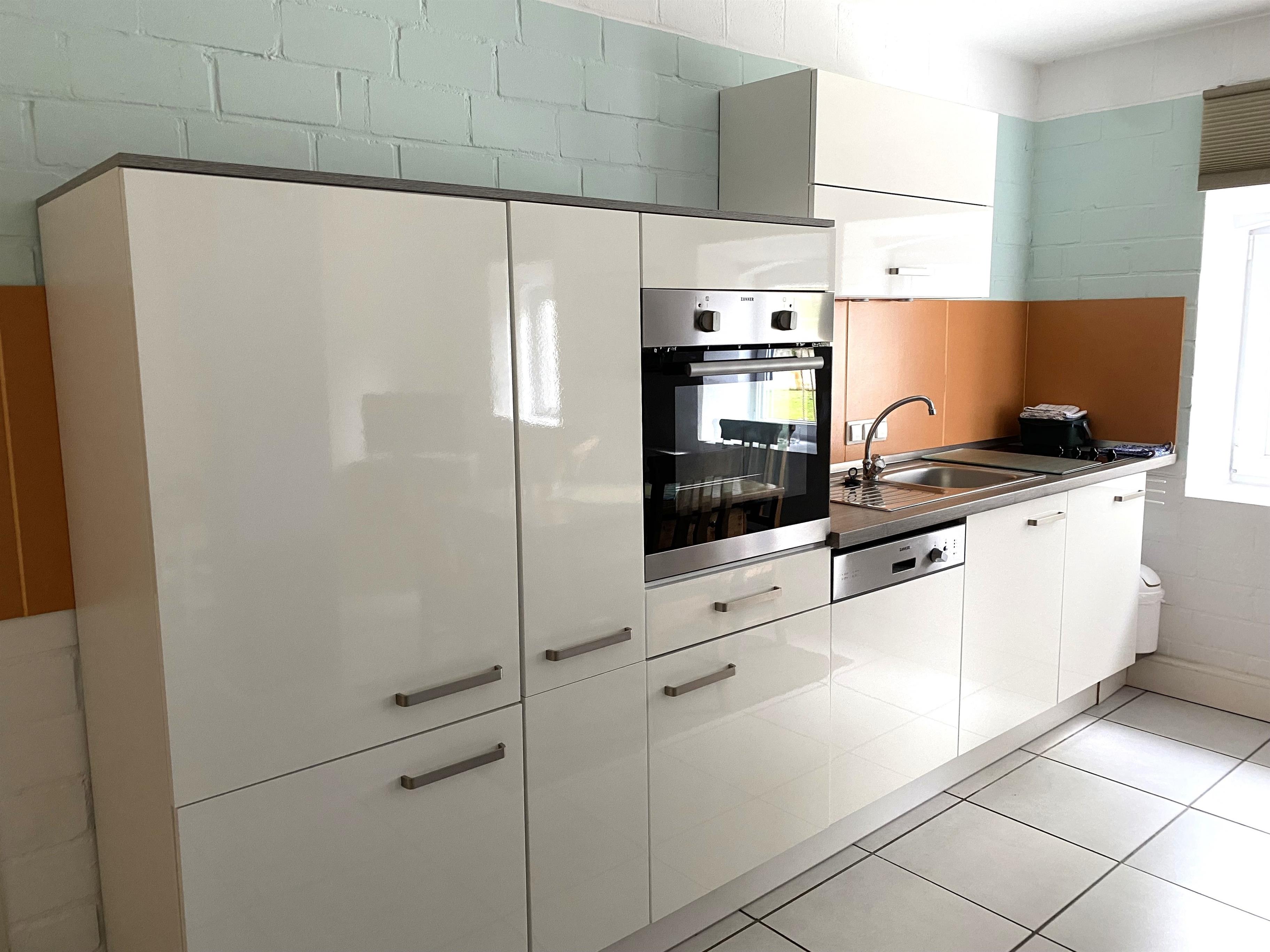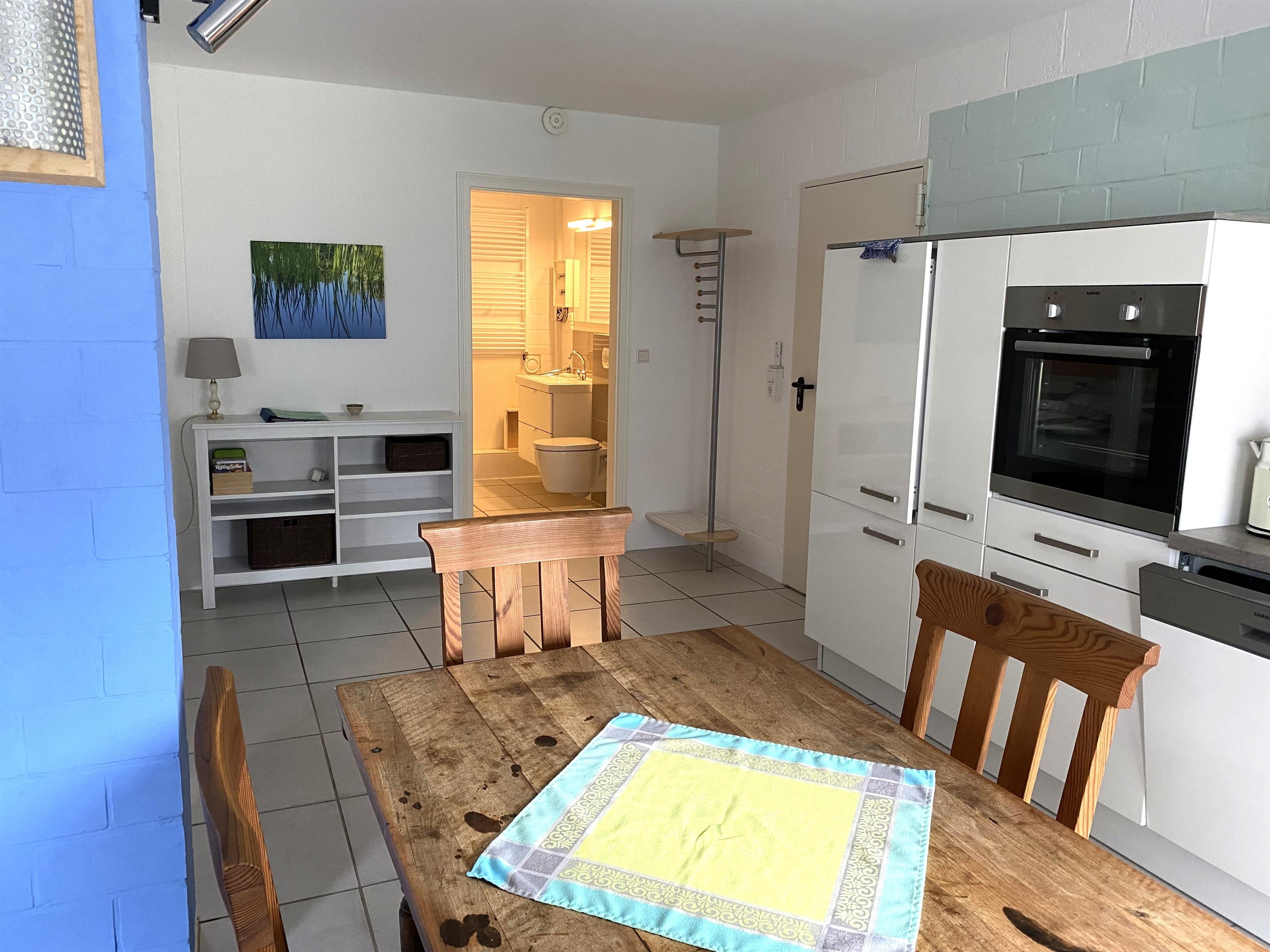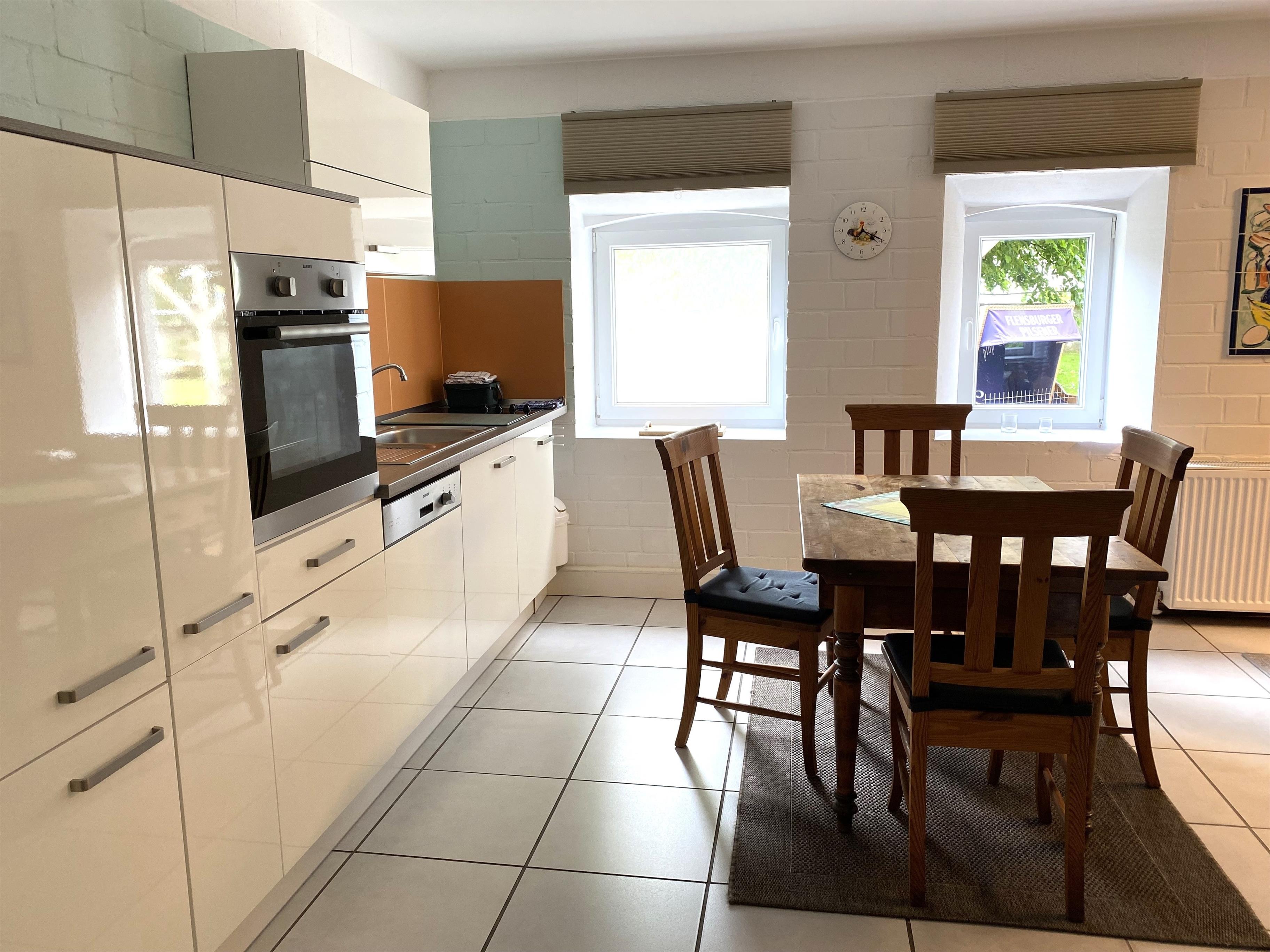 Die Küche ist voll ausgestattet mit Ceranherd, Backofen, Spüle, Spülmaschine, Kühlschrank, Kaffeemaschine, Toaster sowie umfangreichem Geschirr. Die Wohnung verfügt über komfortables WLAN sowie ein TV mit Sat- und Internet-Anschluss sowohl für Fernseh- als auch Radioempfang.