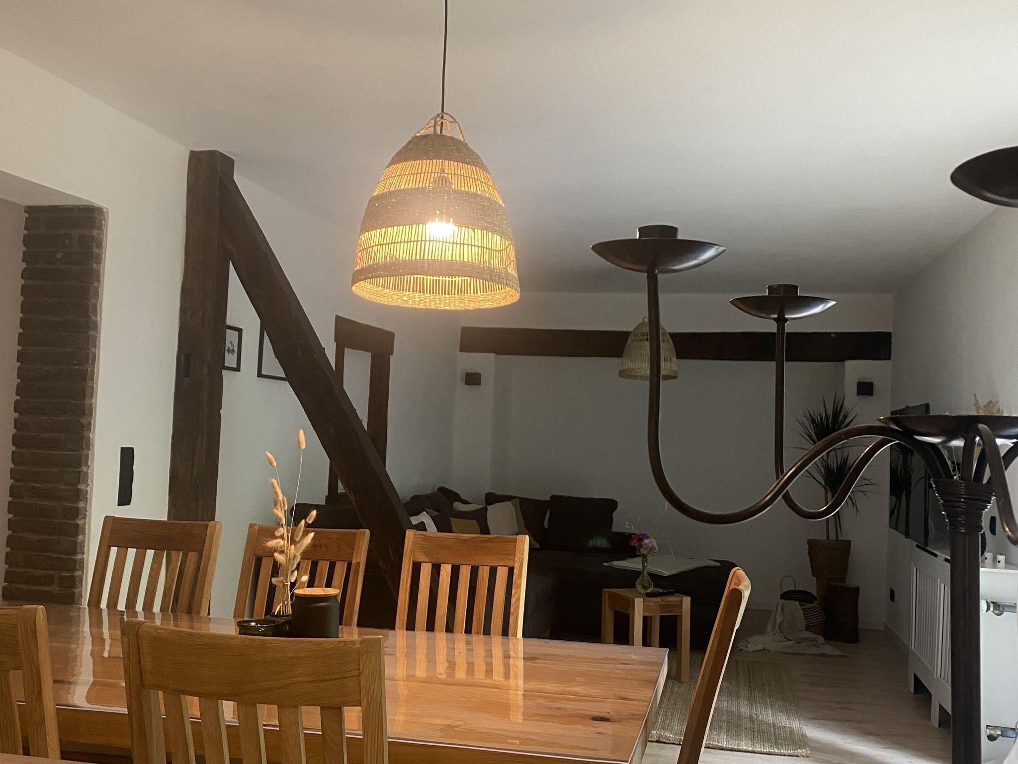 Unser wunderschönes, denkmalgschütztes Ferienhaus wurde 1799 erbaut. Auf dem Anwesen Steinmühle befindet sich zudem eine alte Scheune und unser Wohnhaus, die alte Mühle. Das ansprechende Zierfachwerk verleiht dem Haus einen sehr besonderen Charme - Urig und romantisch zugleich.