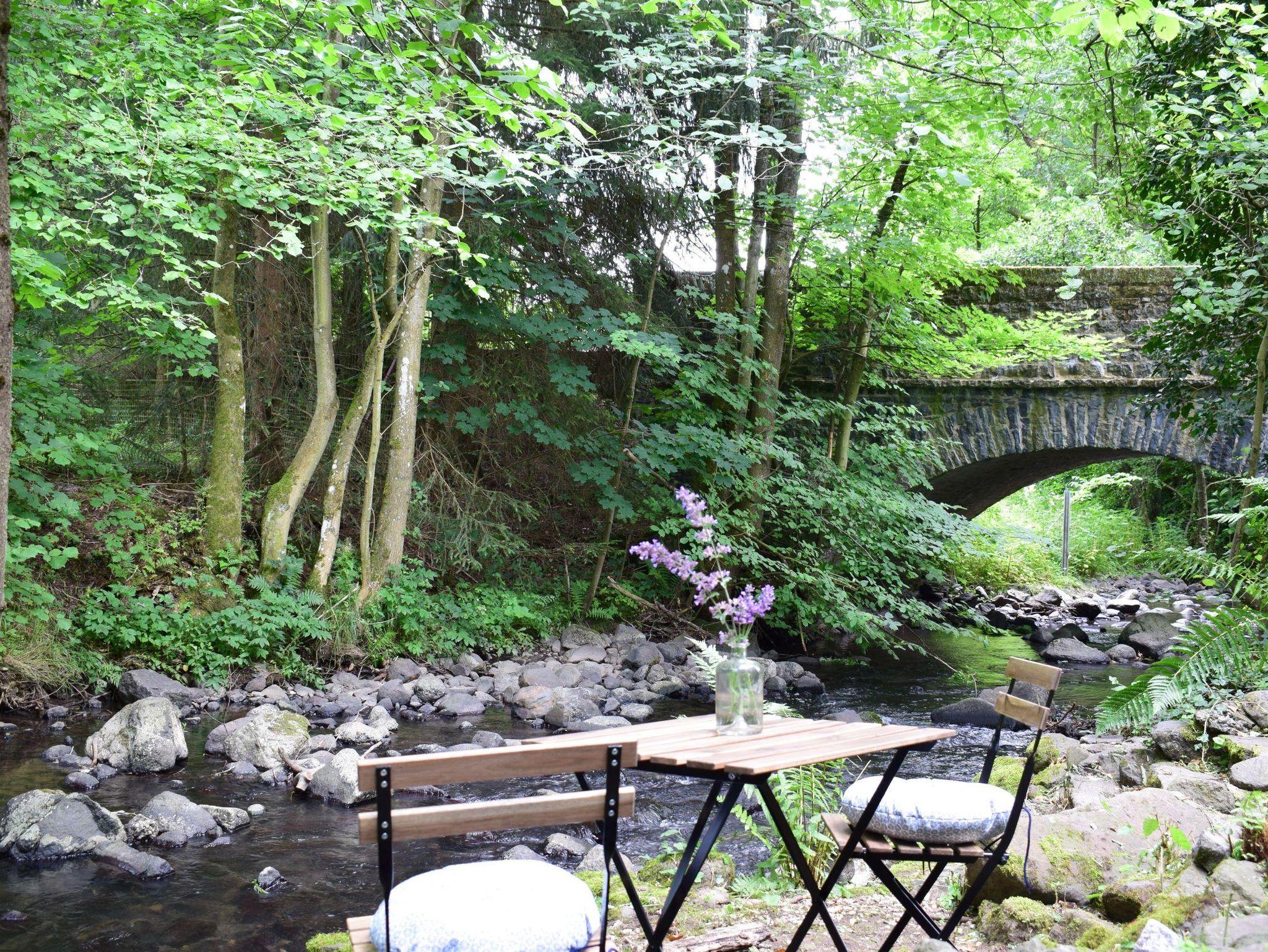 Es besticht durch seine besondere Lage. Etwas außerhalb der Ortschaft Gemünden im Westerwald liegt es direkt am Holzbach. Von der kleinen privaten Terrasse hinter dem Haus haben unsere Gäste direkten Zugang zum wild-romantischen Bachbett und finden an heißen Sommertagen ausreichend Gelegenheit zur Abkühlung oder einfach nur zum Verweilen und Erholen.