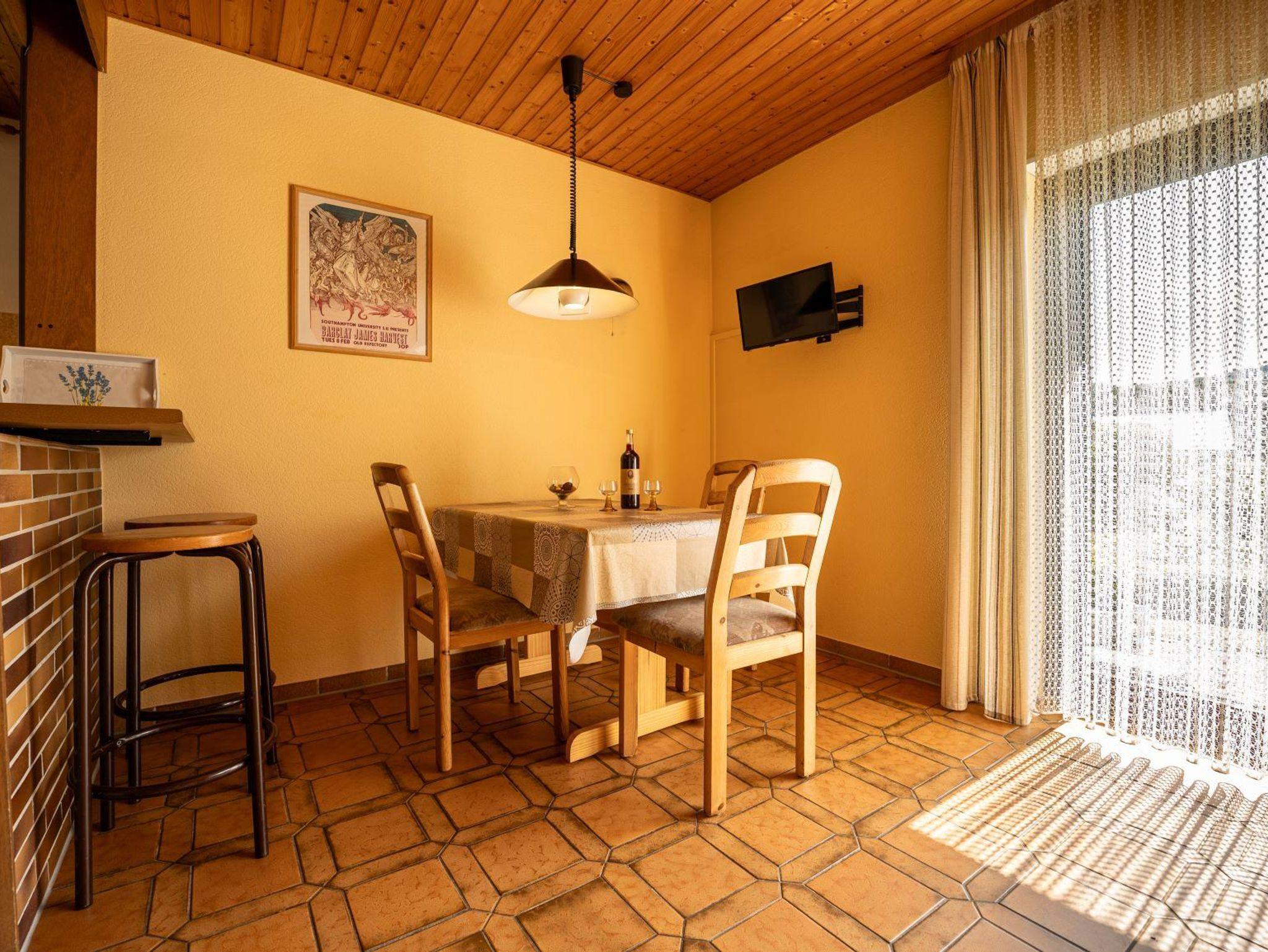 Die Wohnung ist 44 m² groß und besteht aus einem kombiniertem Wohn- und Schlafraum mit einem Doppelbett. Bei Bedarf (3. Pers.) ist ein zusätzliches Zustellbett vorhanden. Weiterhin finden Sie eine Küche mit Essbar, eine separate Essecke sowie einen abgeschlossenen Sanitärbereich mit ebenerdiger Dusche vor. Ein Kinderreisebett wird zusätzlich angeboten.