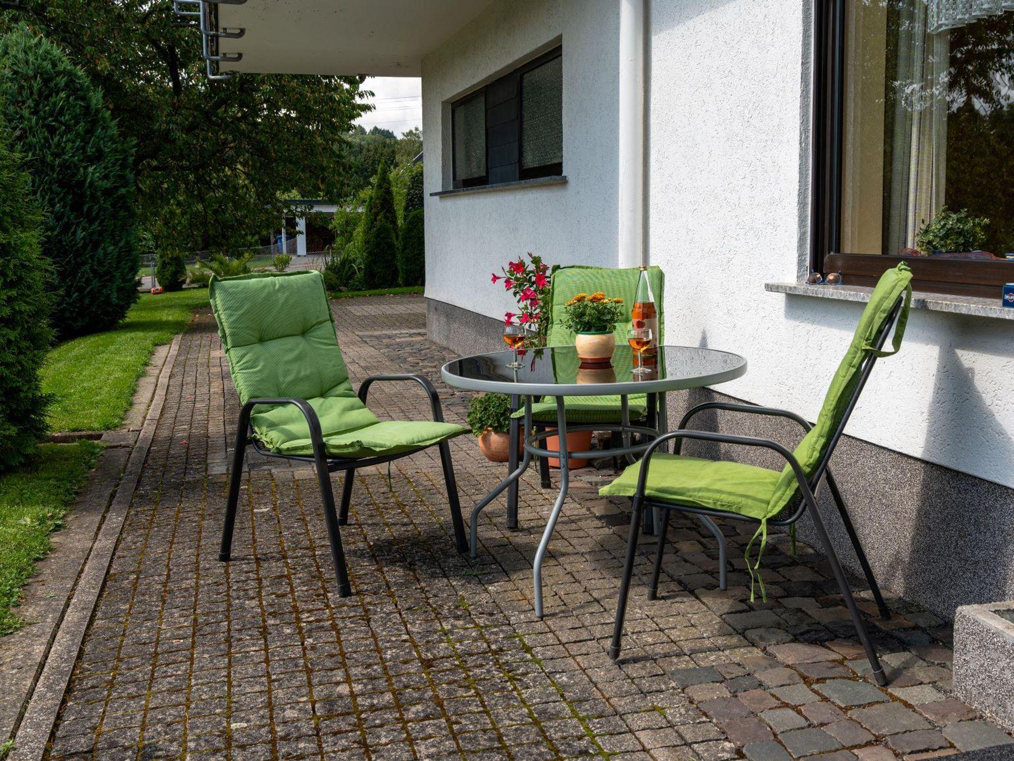 Unser Haus liegt auf einem großen Grundstück in ruhiger Umgebung am Fuße eines Südhanges mit Blick auf Schloss und Soonwald. Es gibt einen überdachten Parkplatz am Haus und Unterstellmöglichkeiten für Fahrräder. Eine große Terrasse, eine Liegewiese und Spielmöglichkeiten für Kinder stehen ebenfalls zur Verfügung. Zum Angebot gehört auch die Nutzung einer Waschmaschine. Wir bieten ferner einen kostenlosen Hol- und Bringservice vom und zum Soonwaldsteig nahe der Ruine Koppenstein.