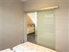Im Eingangsbereich findet man eine kleine Sitzgelegenheit und einen Schrank mit Spiegel in dem Kleidung o. Ä. aufbewahrt werden kann.