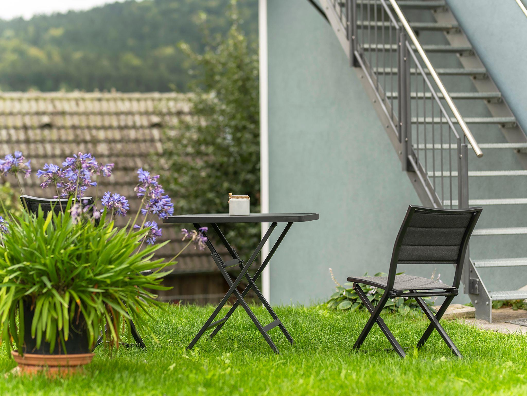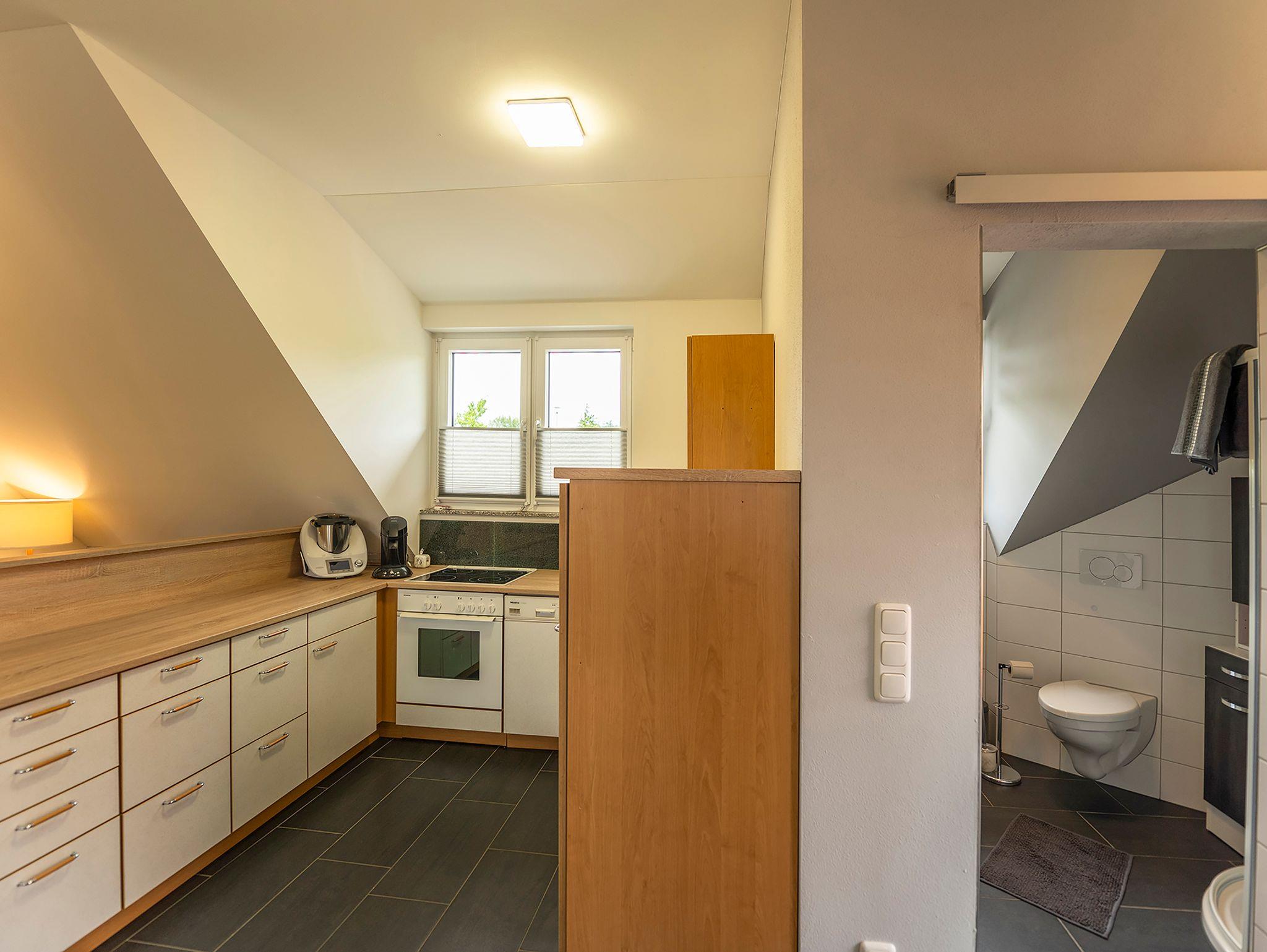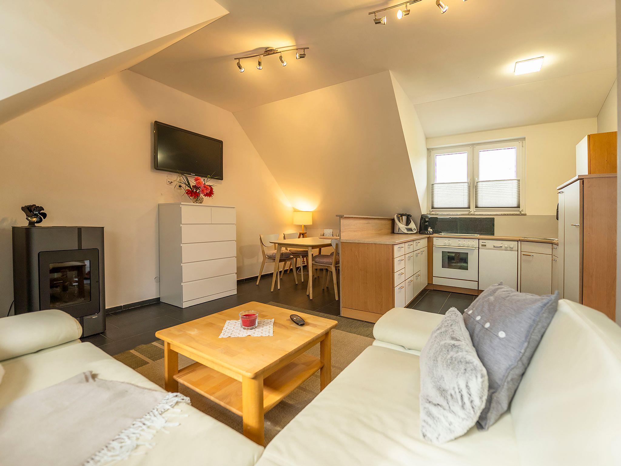 Unsere Ferienwohnung befindet sich im ersten Stock mit separatem Eingang. Zusätzlich bieten wir Ihnen WLAN, TV (Satellit) und den Parkplatz direkt vor der Tür kostenfrei an.