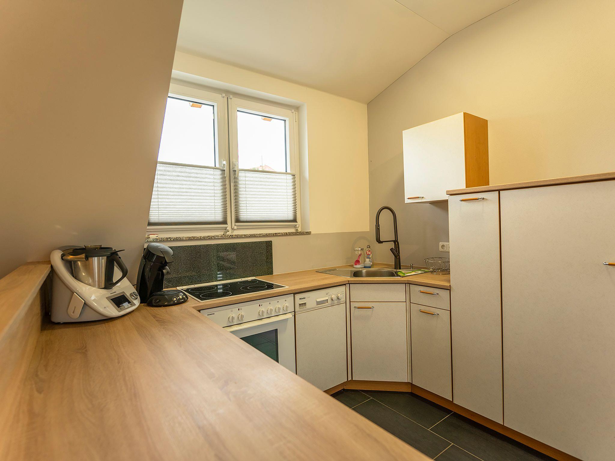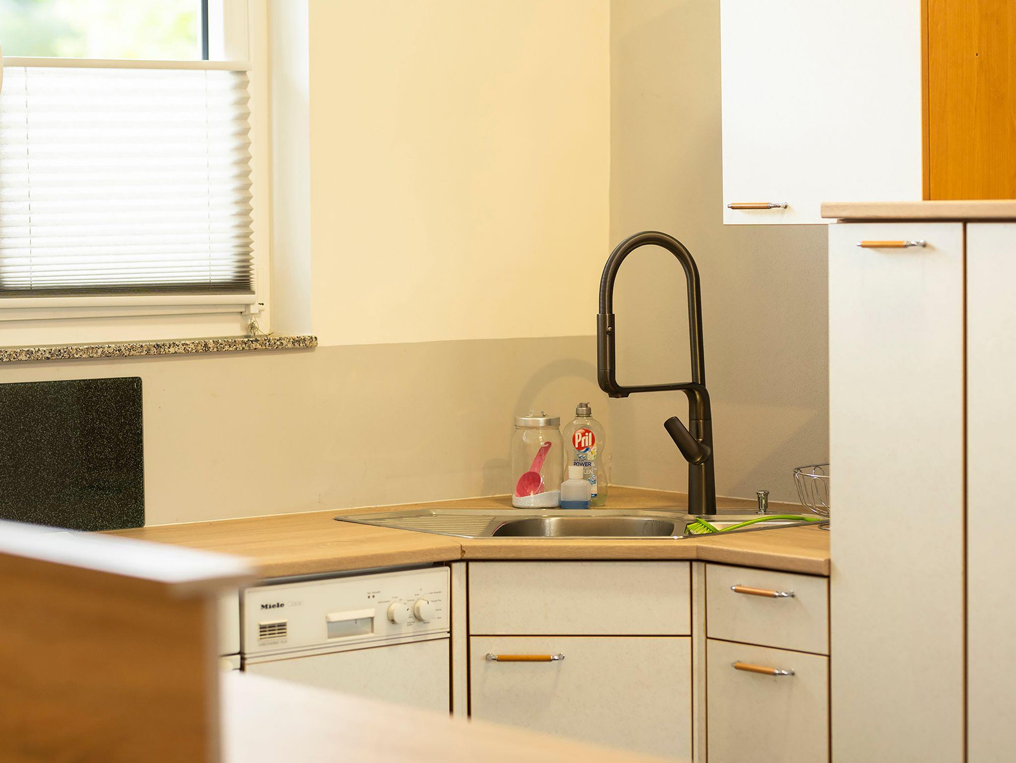 Die Küche ist voll ausgestattet und verfügt außerdem über einen Geschirrspüler und einen Wassersprudler.
