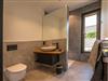 Bad mit großzügiger barrierefreier Dusche, Waschbecken und WC. 1 Satz Handtücher wird gestellt.