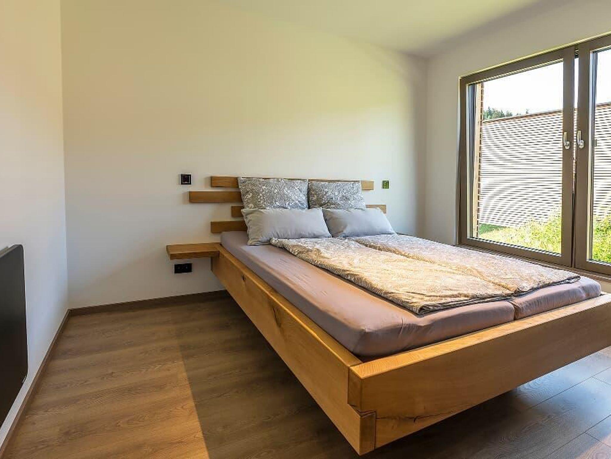 1 großes, helles Schlafzimmer mit einem Doppelbett und großzügigem Schrank. Schlafcouch für weitere 2 Personen im Wohnbereich. Bettwäsche wird gestellt. Auf Anfrage stellen wir auch ein Babyreisebett.